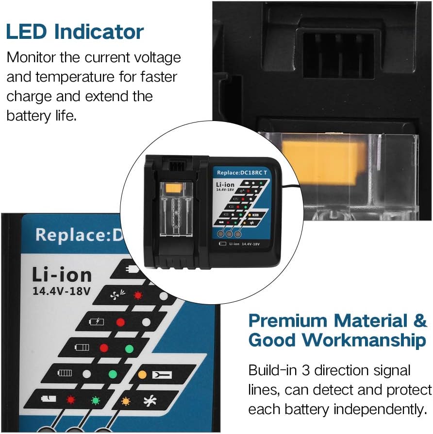 يتواصل هذا الشاحن مع شريحة البطارية المدمجة طوال عملية الشحن لتحسين عمر البطارية من خلال التحكم النشط في التيار والجهد ودرجة الحرارة. بعد الشحن بالكامل، سيذكرك بإضاءة الضوء الأخضر. سيكون من السهل معرفة حالة الشحن وحالة البطارية