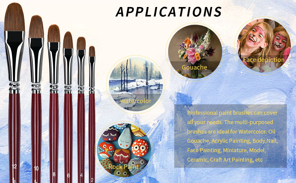 الخصائص: فرش طلاء الشعر هذه عبارة عن مزيج من الشعر الفاخر للحصول على سعة سائلة ممتازة. تمنحك مجموعة فرش الطلاء المصنوعة من السمور ضربات رائعة من الطلاء أثناء طلاء تحفتك الفنية