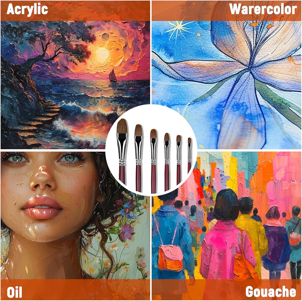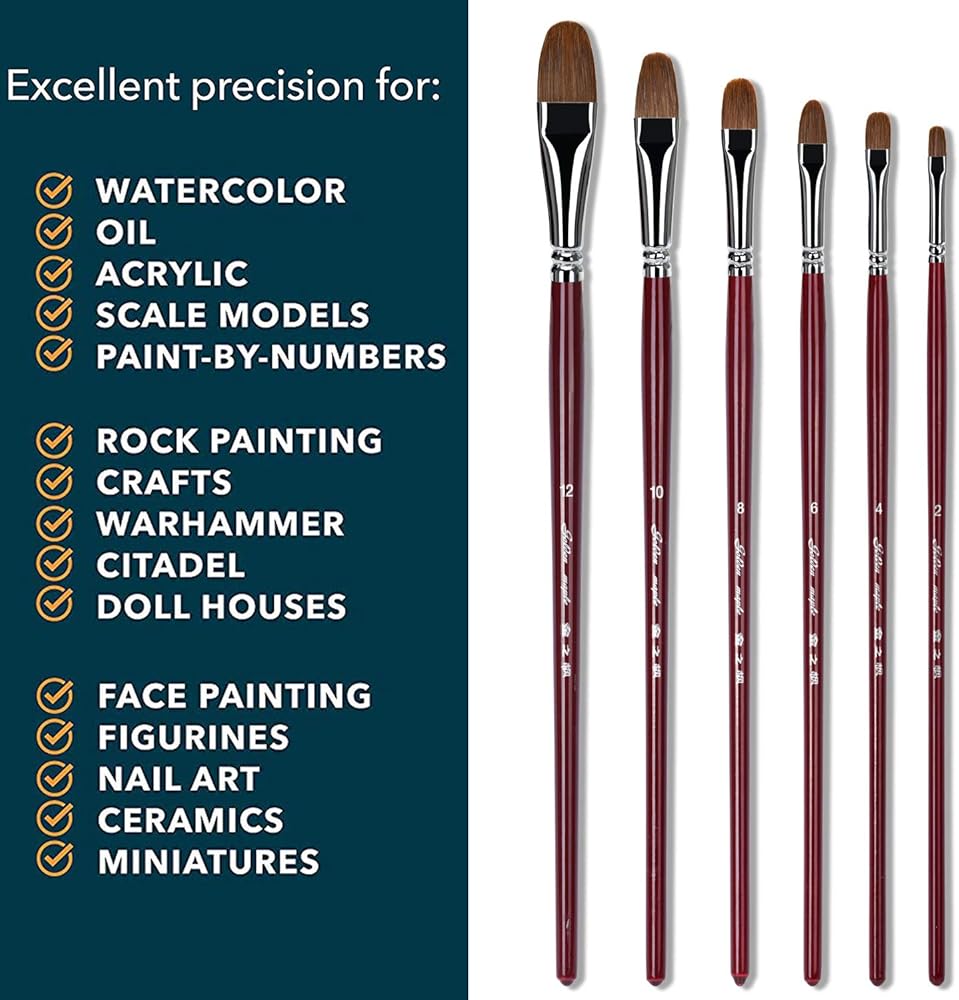 جودة الفنان: مجموعة فرش طلاء فيلبرت باللون الأحمر من فرش طلاء الفنان. رائعة للطلاب والفنانين المحترفين الذين يستخدمون الدهانات التالية: دهانات الأكريليك والدهانات الزيتية. يمكن استخدامها في طلاء الأكريليك والزيت والألوان المائية وطلاء الوجه