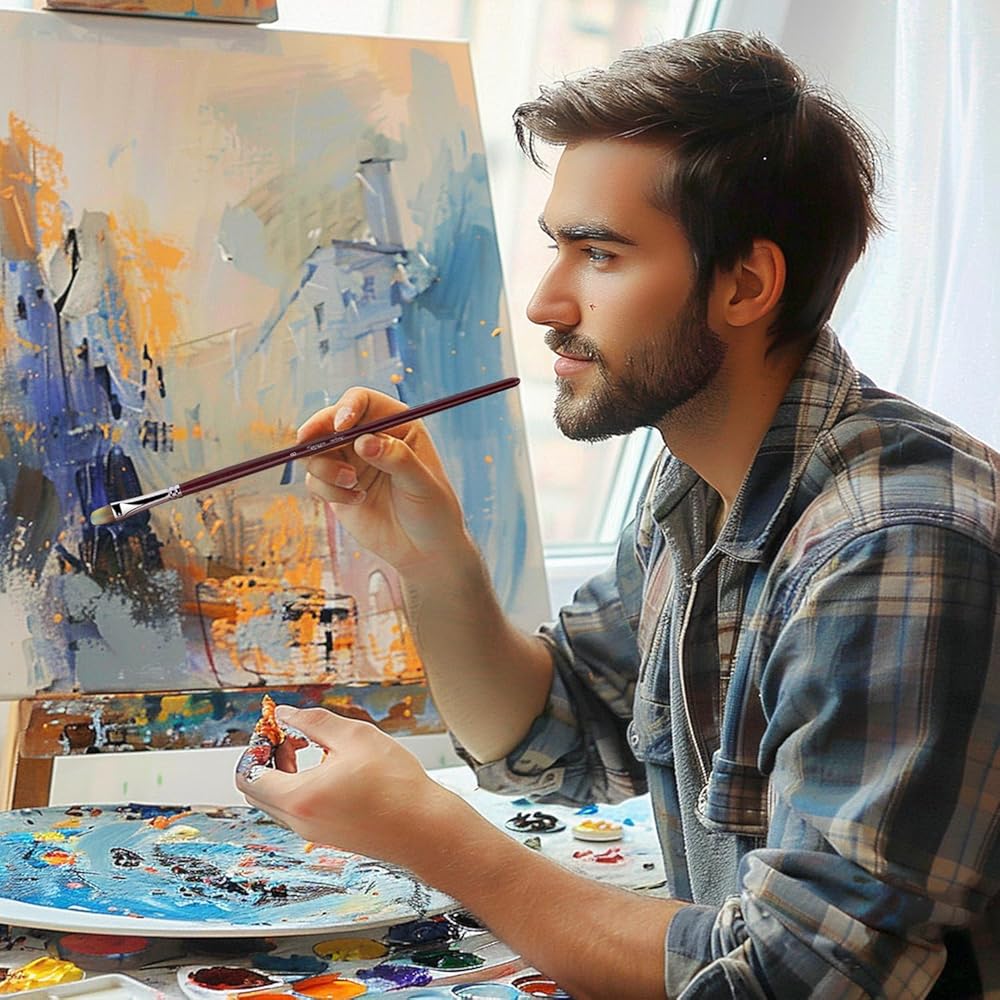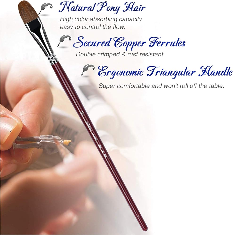 قوة متينة: فرش على شكل فيلبرت عالية الجودة مصنوعة من مقابض طويلة من خشب البتولا، مما يمنحك سهولة مع كل تمريرة.