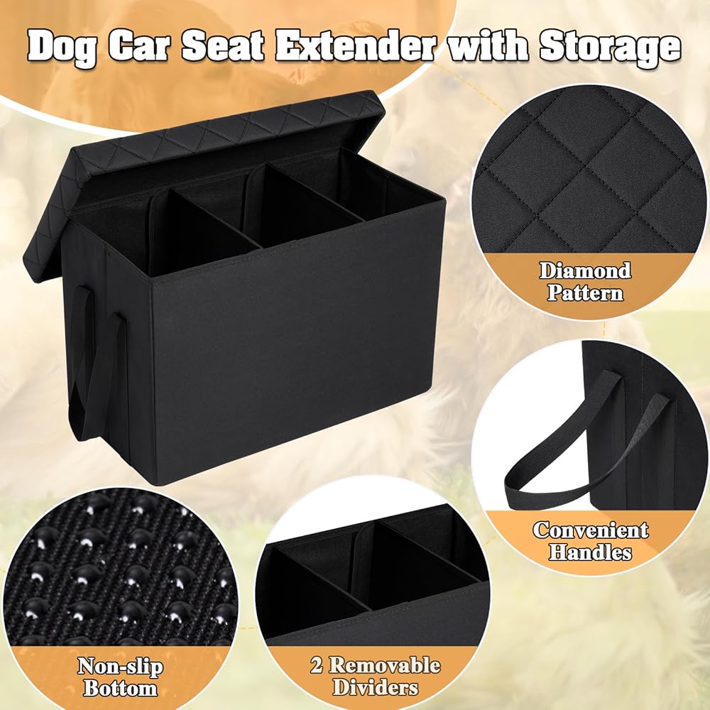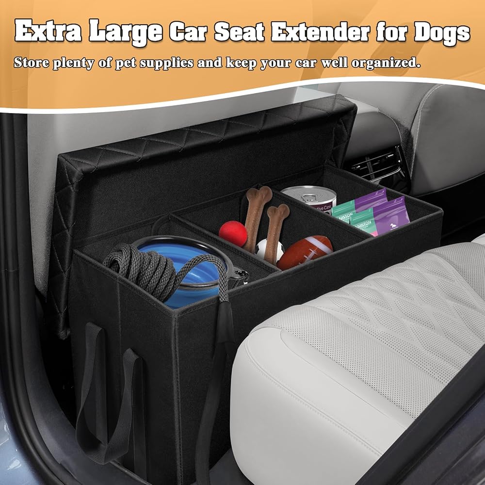 موسع مقعد السيارة للكلاب مع مساحة تخزين، موسع مقعد السيارة الخلفي والأمامي للكلاب التي يصل وزنها إلى 200 رطل، موسع مقعد الكلب مع مساحة تخزين للكلاب الكبيرة والصغيرة، حشو فجوة مقعد السيارة باللون الأسود