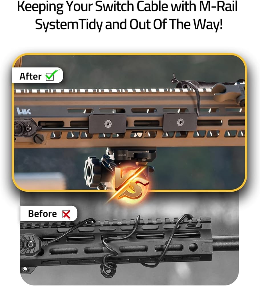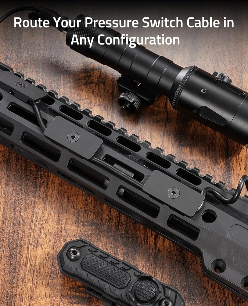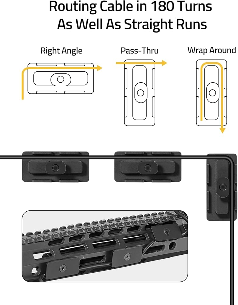 • 【المواد】 أدلة كابل مفتاح الضغط Picatinny، مصنوعة من الألومنيوم المقاوم للحرارة. يوفر متانة تشغيلية، أقوى وأكثر متانة من مشابك الكابلات البلاستيكية.