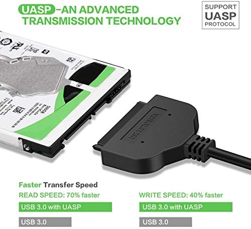 This USB 3.0 to SATA adapter cable lets you connect a 2.5in SATA hard drive or solid state drive to your computer through an available USB 3 port. The cable supports UASP, allowing for transfer speeds up to 70% faster than conventional USB 3.0, which enables you to utilize the full potential of your SATA III SSD/HDD, when paired with a UASP-enabled host controller. See our UASP testing results below for further details.