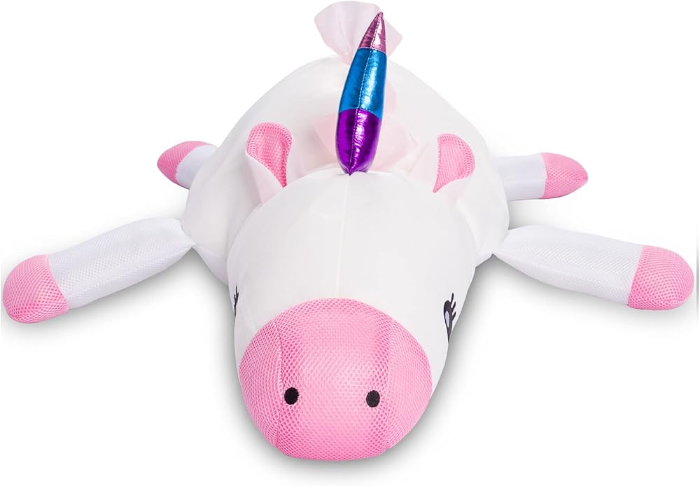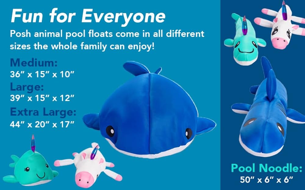 Don't you just Love blowing up Inflatable Rafts and Noodles – SAID NO ONE! Our Impressive Posh Creations Development Team is at it again with our latest product innovation. After Several Rounds of Development, we are now ready to Launch our New Line of Floating Animal Pool Floats and Noodles. The great part of these Animal Floats (Mainly talking to you Mom and Dad) is they require no air! They are stuffed with soft and durable polystyrene beads and play ready out of the box. Our Animal floating bean bag pool floats come in 3 different animals (Whale Shark, Narwhal, and Unicorn) and in 3 sizes (Medium, Large and Extra Large) and will become the hit of the pool right away. Watch as your children try to ride on our different animals in the pool. Believe us when we say it is much easier to saddle them outside the pool than inside. But kids love a challenge and it is fun to watch them work on their technique. Just let them know the larger the animal size the more challenging they are to ride. Have fun and any feedback from your kids please let us know.