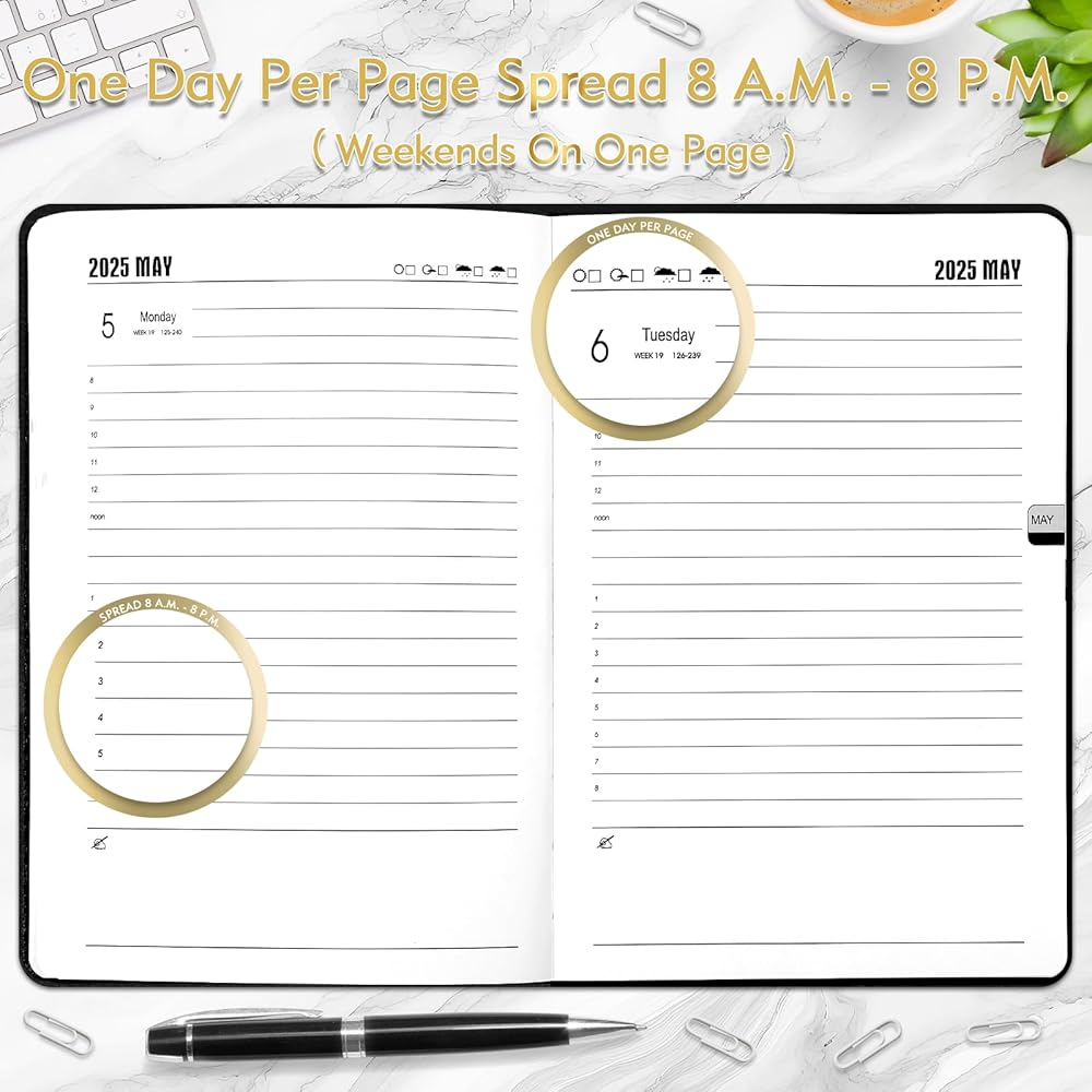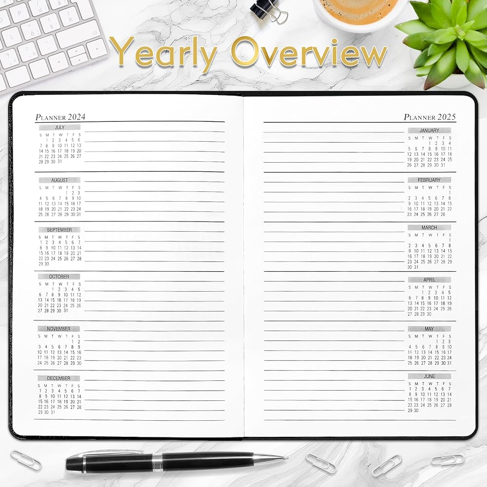 - يوليو 2024 - يونيو 2025، مخطط أكاديمي لمدة 12 شهرًا. يوم واحد لكل صفحة (يومان/صفحة يومي السبت والأحد) من الساعة 8 صباحًا حتى 8 مساءً.