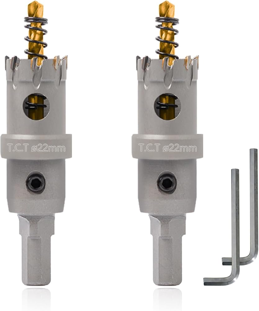 مجموعة منشار ثقب TCT مكونة من قطعتين: بقطر قطع 5/8 بوصة (16 مم) وعمق قطع 1 بوصة (25 مم)، وتتميز بقطر ساق 3/8 بوصة (10 مم).