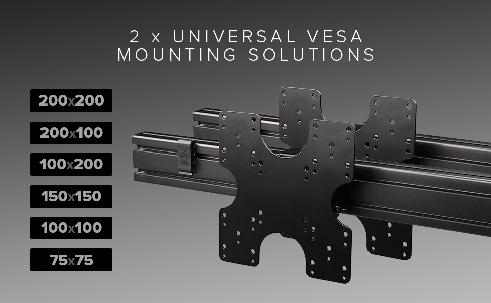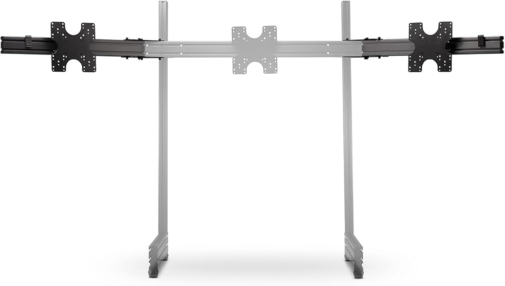 The Next Level Racing Elite Triple Monitor Stand Add On transforms the Elite Freestanding Single Monitor Stand into the ultimate triple screen solution. The unparalleled strength of 6063 aluminum extrusion means it supports three 21”-43” screens with the included VESA mounts and includes height-adjustable feet, custom cable management clips and a spirit level for the perfect immersive racing simulator cockpit setup. After countless hours of design and development, the Elite Freestanding Triple Monitor Stand Add On aims to fulfill the Elite sim racer's dream - unparalleled freedom of adjustment (500mm Horizontal and 18 degrees Tilt on each screen) and fine-tuning options for the ultimate triple screen racing setup, with the rigidity to back it up. Next Level Racing Traction Plus platform customers will be treated to added immersion, by bringing the screens closer to their seated position with the adjustable width of the triple monitor stand. The Elite Freestanding Triple Monitor Stand Add On carries the same features like the high-quality Carbon Grey Anodized finish to the laser engraved alignment lines as the rest of the Elite range of products and accessories, completing the dream triple monitor cockpit setup.