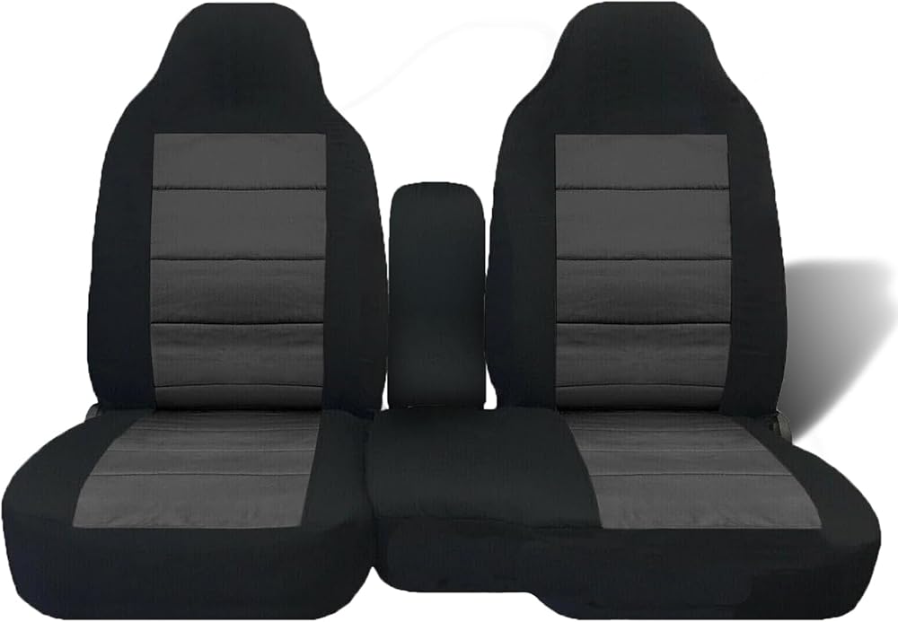 أغطية مقاعد السيارة الأمامية لسيارة تشيفي كولورادو/جي إم سي كانيون 2004-2012، أغطية مقاعد أمامية عالية الظهر 60/40 مع مساند رأس مصبوبة، وحدة تحكم مركزية مفتوحة ووسادة مقعد إسفنجية متضمنة، ملائمة تمامًا