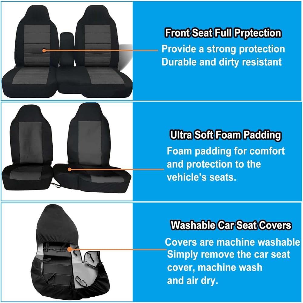 Front Car Seat Covers for 2004-2012 Chevy Colorado/GMC Canyon, Front High Back 60/40 Split Bench Seat Covers with Molded Headrests, Opening Center Console and Foam Seat Cusion, Exact Fit
