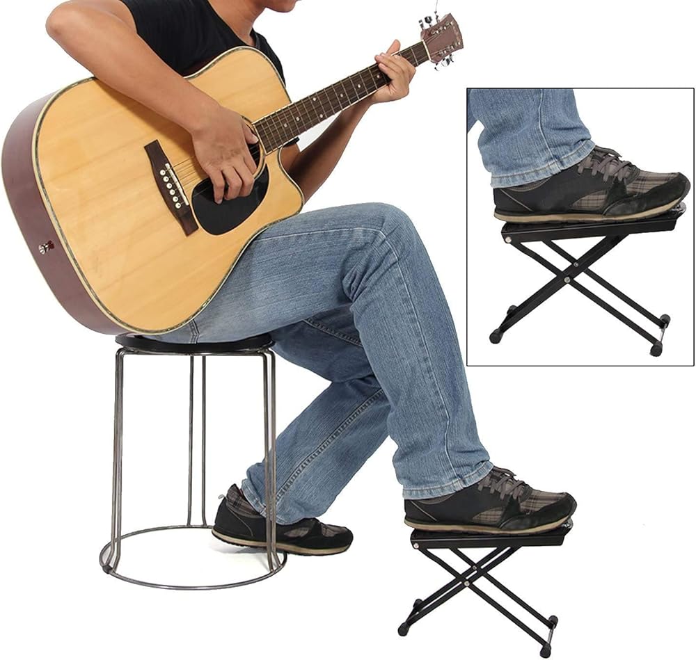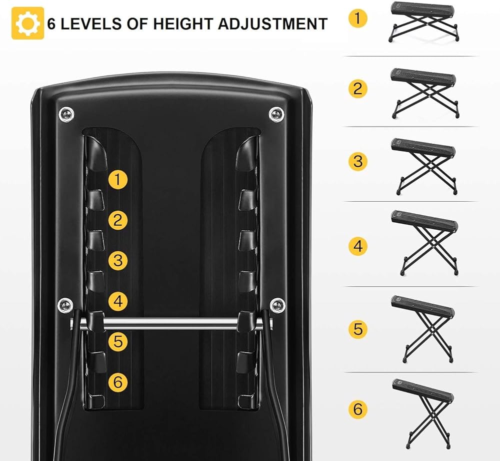 Luckyya مثخن جيتار مسند قدم ستة مستويات من الارتفاع المعدل قابل للطي للخدمة الشاقة دواسة