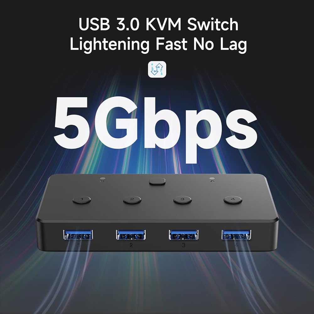 ACASIS KVM Switch,USB 3.0 Switcher 2 Computers Share 4 USB 3.0 Ports for Mouse, Keyboard,Printer and More,USB Switch Compatible with Mac/Windows/Linux