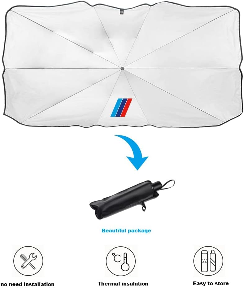 【سهلة الاستخدام والتخزين】مظلة الزجاج الأمامي الكبيرة للسيارة سهلة الاستخدام والتركيب غير المدمر، أكمل التثبيت في غضون ثوانٍ قليلة. يمكن فتحها بسرعة مثل المظلة (مع حقيبة تخزين)، ويمكن طيها وتخزينها. توضع في باب السيارة، وجهاز التحكم المركزي، وصندوق القفازات.
