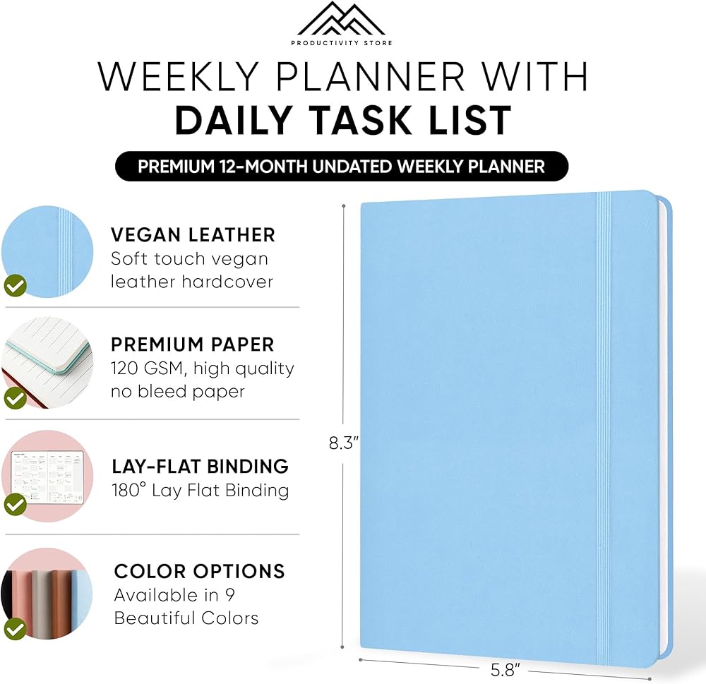 مخطط أسبوعي غير مؤرخ مع ملصقات مخطط ومكافآت أخرى: استخدم أقسام المخطط الأسبوعي للتخطيط للمستقبل كل أسبوع والتفكير في أدائك الأسبوعي. يأتي هذا المخطط الأسبوعي لعام 2024 أيضًا مع 5 ميزات إضافية بما في ذلك ملصقات المخطط ومتتبع العادات والاقتباسات الملهمة الأسبوعية ومساحة للملاحظات.