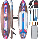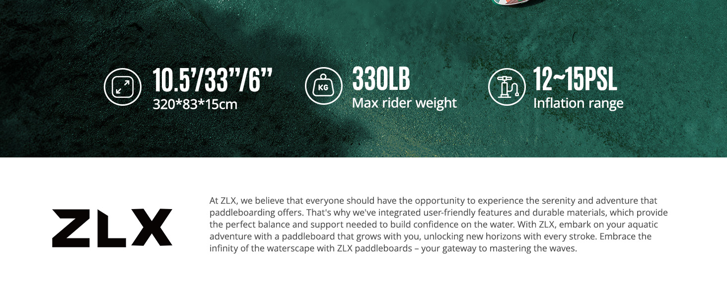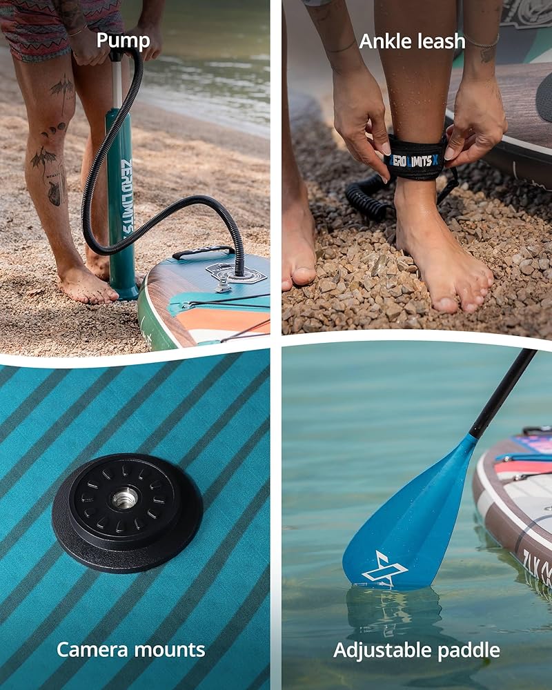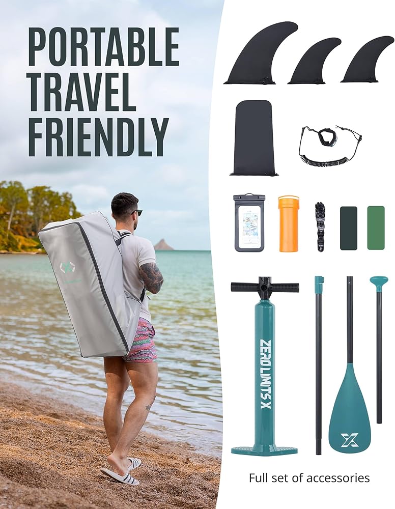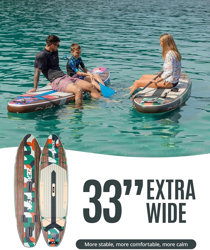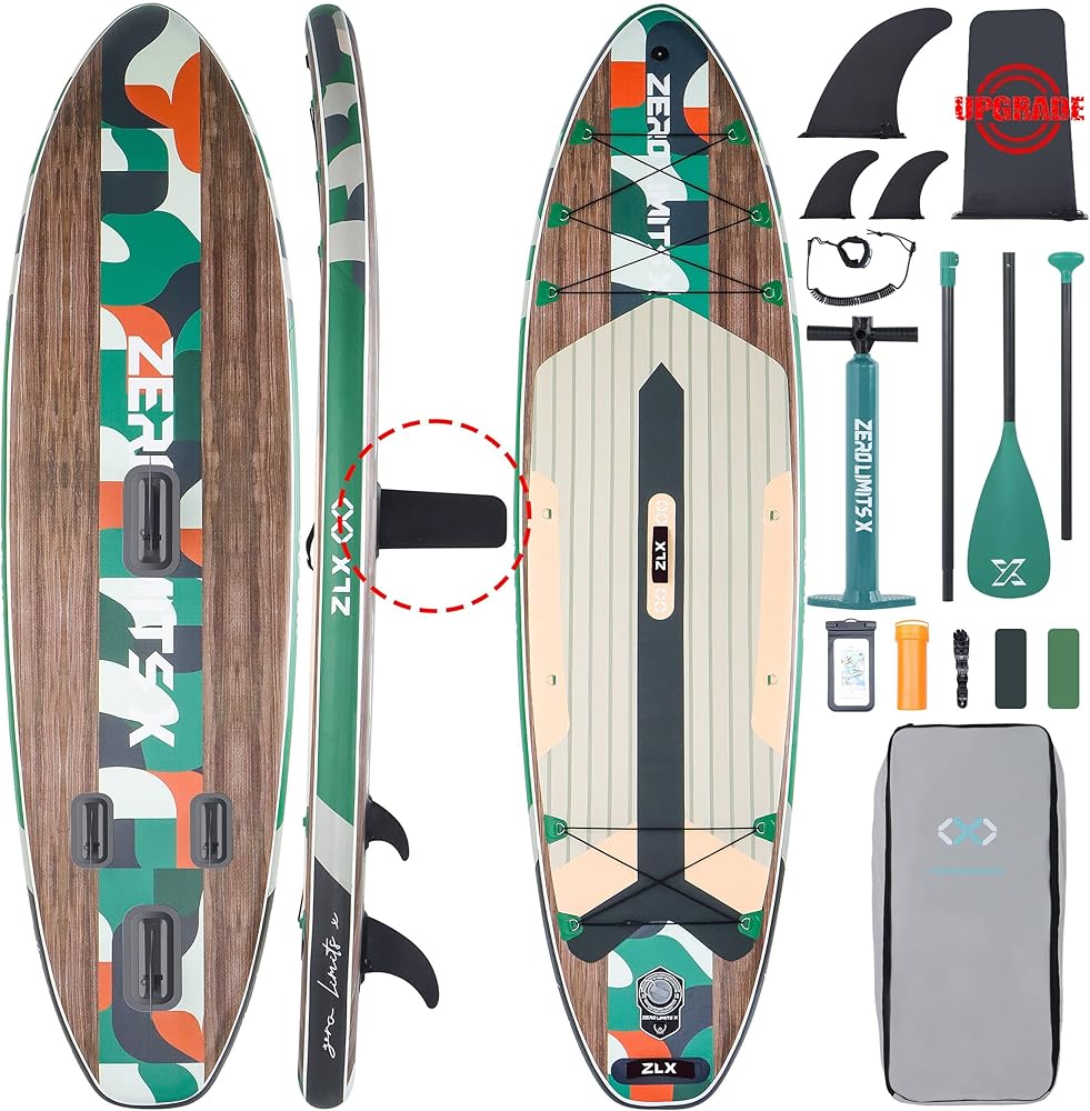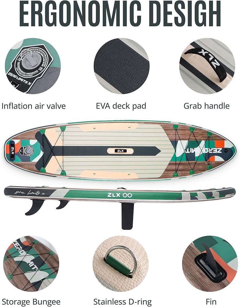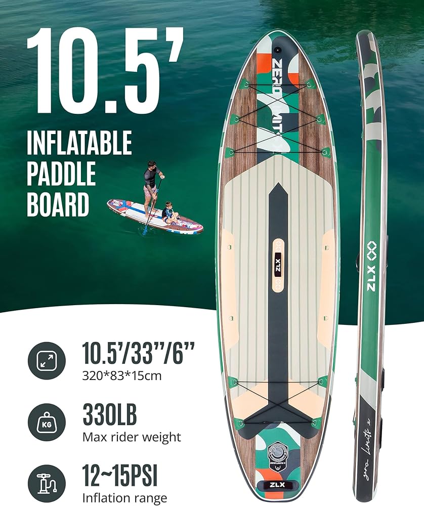 لوح مجداف قابل للنفخ بطول 10.5 قدم من ZLX مع ملحقات لوح SUP لجميع مستويات المهارة للشباب والكبار، سطح واسع وثابت غير قابل للانزلاق، مجداف قابل للتعديل، مقود وحقيبة حمل