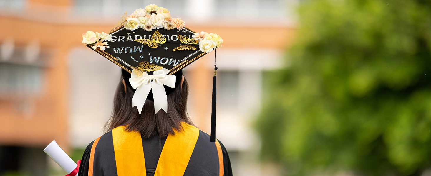 الملحقات الشخصية: نظارات التخرج وربطات العنق وغيرها من الملحقات الصغيرة المصممة خصيصًا ستجعل الخريجين أكثر تميزًا في حفل التخرج.