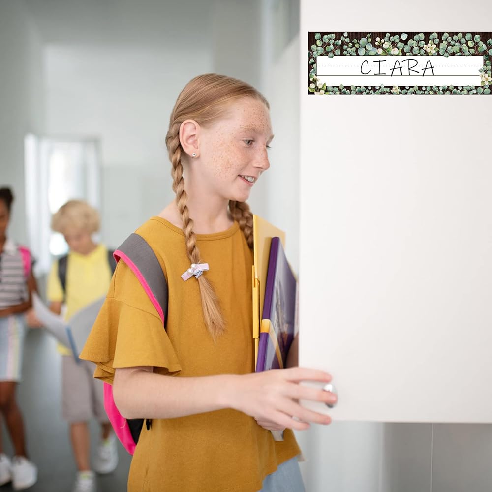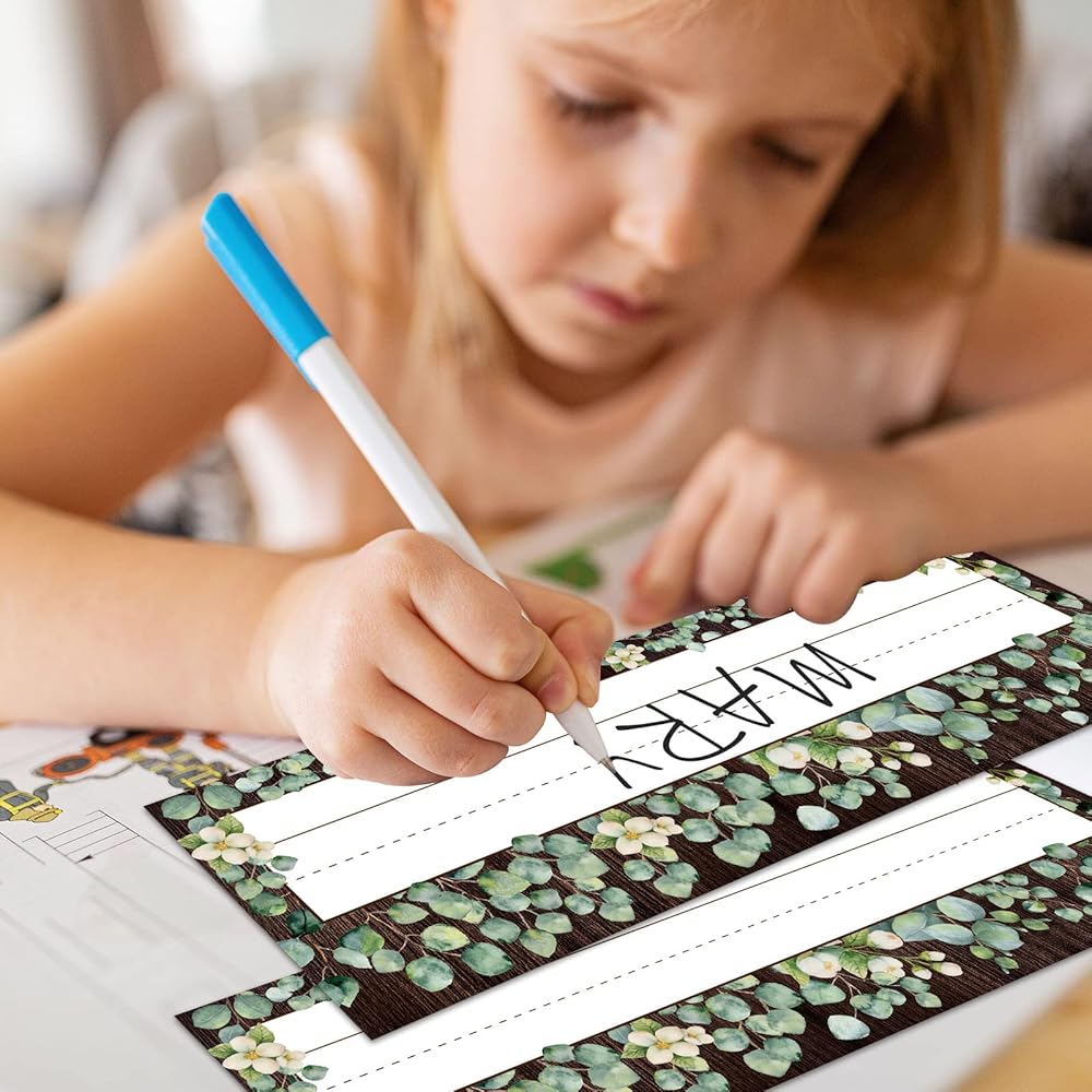 الحجم المثالي: يبلغ مقاس كل لوحة اسم 8.25 سم × 22.86 سم، مثالية لمكاتب وخزائن الفصل الدراسي، ولها مساحة كافية في المنتصف لكتابة الاسم بالكامل.
