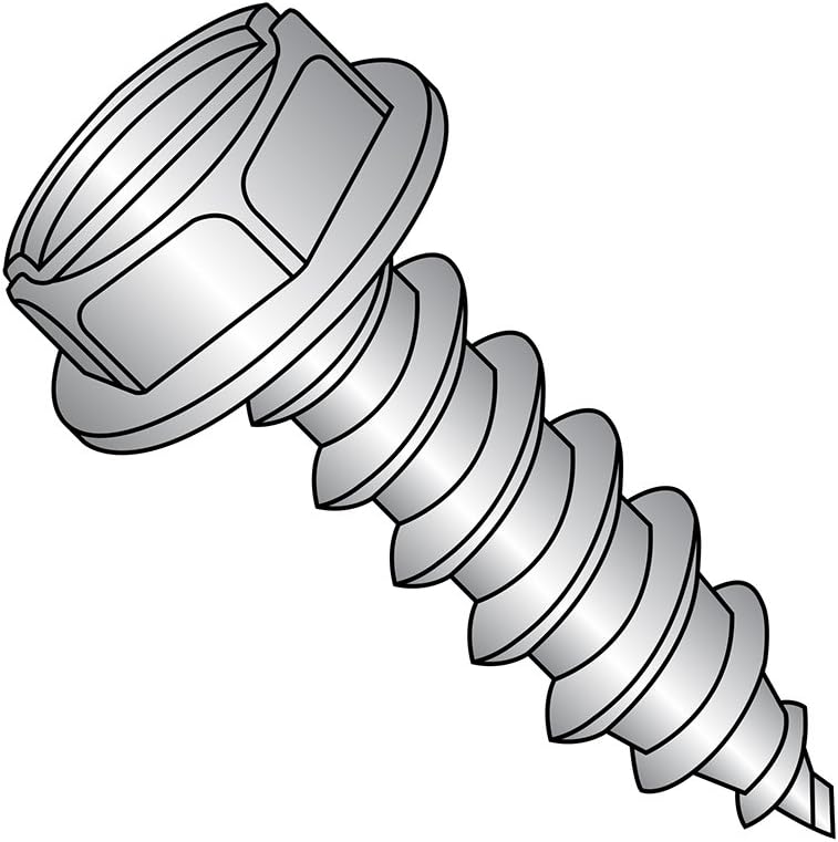 The plain finish 18-8 stainless steel sheet metal screw with hex washer head and slotted drive has a Type AB point for forming threads in thin metals between 0.015" and 0.050" thick and resin impregnated plywood. The Type AB point has the conical tip of a Type A point with the finer spaced threads of a Type B point. The 18-8 stainless steel material provides strength and offers good corrosion resistance in many environments. The material may be slightly magnetic. The hex washer head has six flat sides that a wrench can grip to turn from the side, enabling use when there is no space above the head for a screwdriver. The flange acts like a washer to increase the fastener's bearing surface and distribute the clamping force over a larger area, reducing damage to the material being fastened. The slotted drive has a linear slot for use with a flat-blade driver.