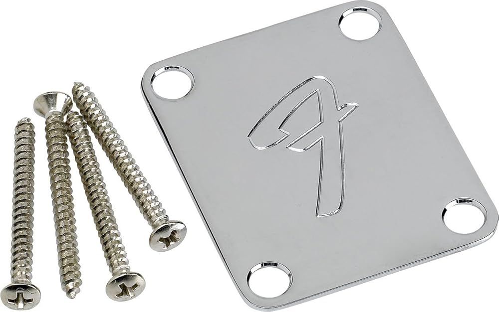 لوحة رقبة على الطراز القديم من السبعينيات مع شعار "F" منقوش، للاستخدام على معظم جيتار Fender والباس باستخدام تركيب رقبة بأربعة براغي بدون تعديل Micro-Tilt™. مسامير التثبيت متضمنة.