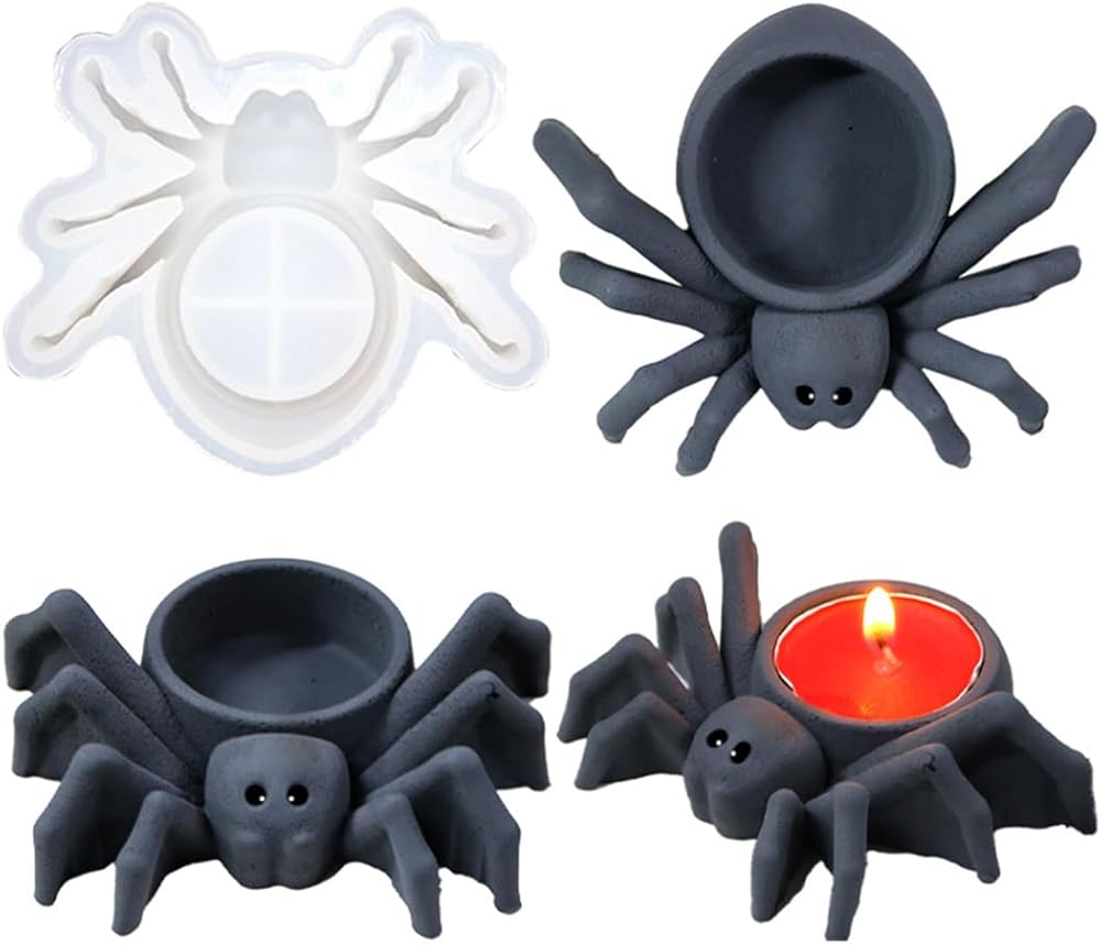 Art Casting Moulds DIY: This spider candle holder mold with smooth interiors surface and clear shapes and not need to be polished, can make your own beautiful own storage box for hold candle, ashtray, jewelry ring, bead, earrings, soap, small change and other small things. Perfect for organize space clutter.