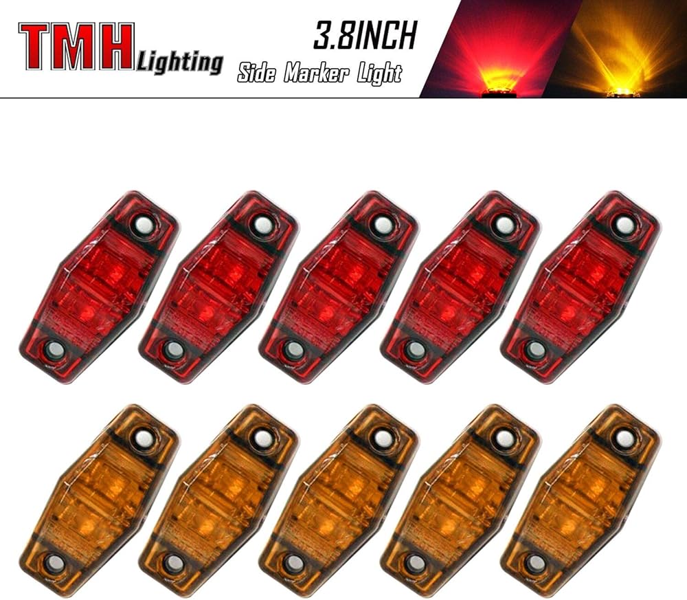 - 10 قطع من 5 كهرمان، 5 أضواء مؤشر جانبية حمراء 2.5 بوصة × 1.1 بوصة × 0.7 بوصة