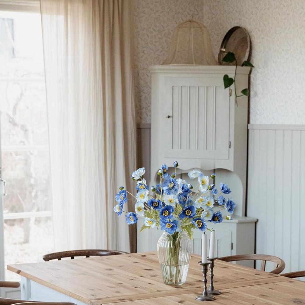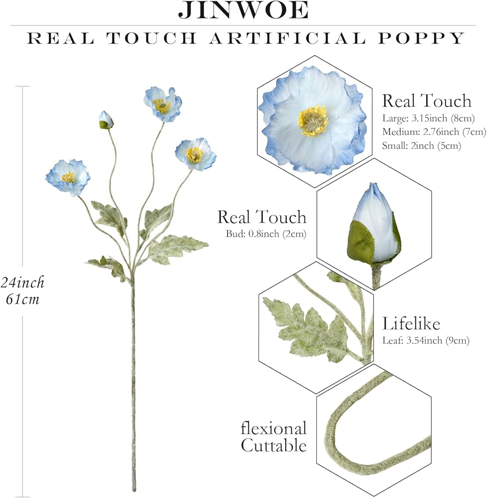 ❀ نابض بالحياة: حرير عالي الجودة ومواد متدفقة؛ يحاكي بشكل أفضل ويقترب من ملمس ومظهر الزهور الحقيقية. تبدو زهور الخشخاش الصناعية والأوراق والسيقان واقعية للغاية.