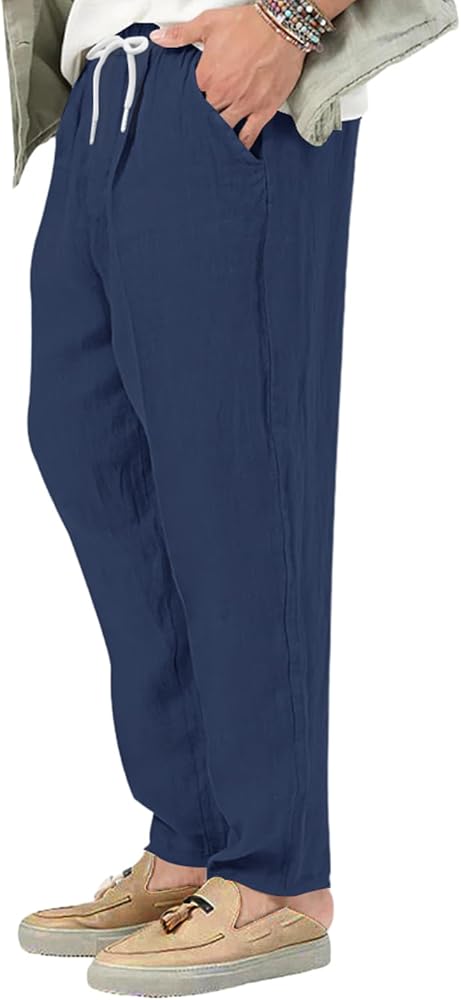المناسبة: سراويل كتان الشاطئ الكاجوال للرجال مثالية للاستخدام اليومي، والعطلات، والشاطئ، والتنزه سيرًا على الأقدام، والجولف، واليوجا، والمدرسة. إلخ. يجدر وجوده في الصيف وطوال العام.