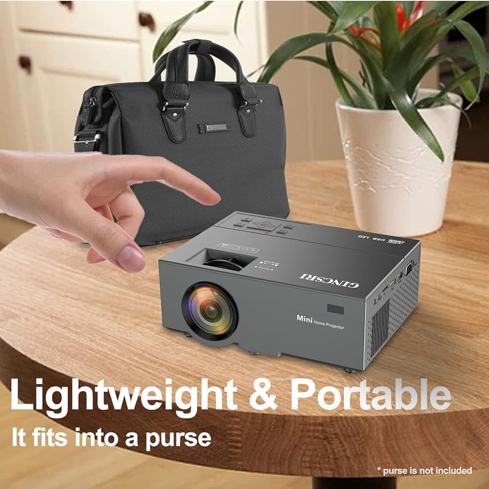 2023 جهاز عرض GINCSRI صغير لأجهزة عرض الفيديو iphone HD 1080P 9800 لومن 200 بوصة جهاز عرض فيلم منزلي صغير محمول جهاز عرض تلفزيون محمول محمول جهاز عرض خارجي مع مكبرات صوت حامل ثلاثي القوائم HDMI USB