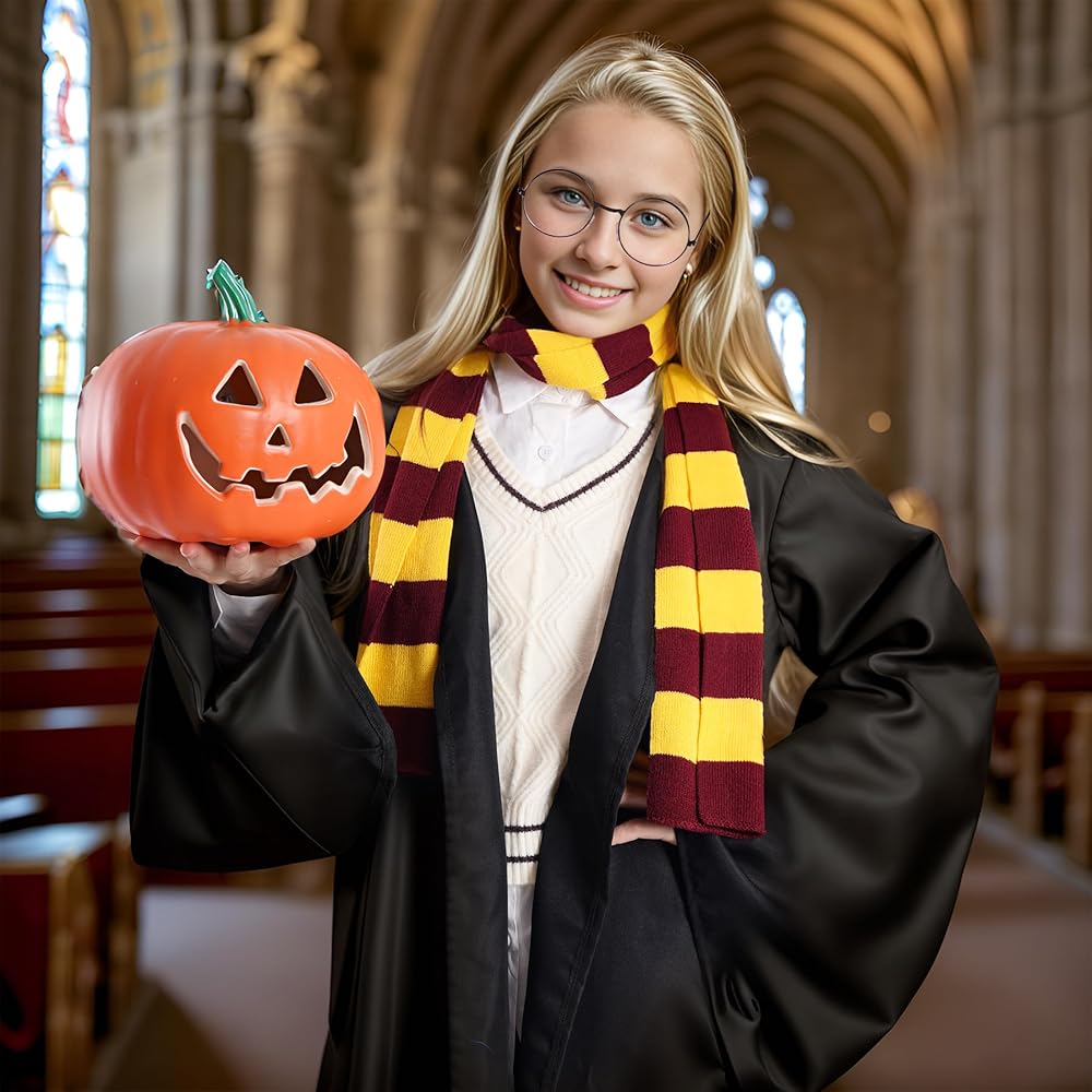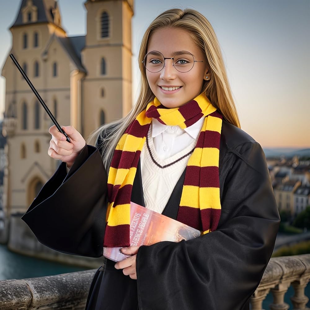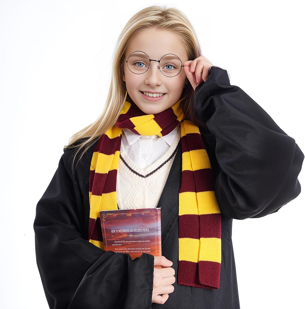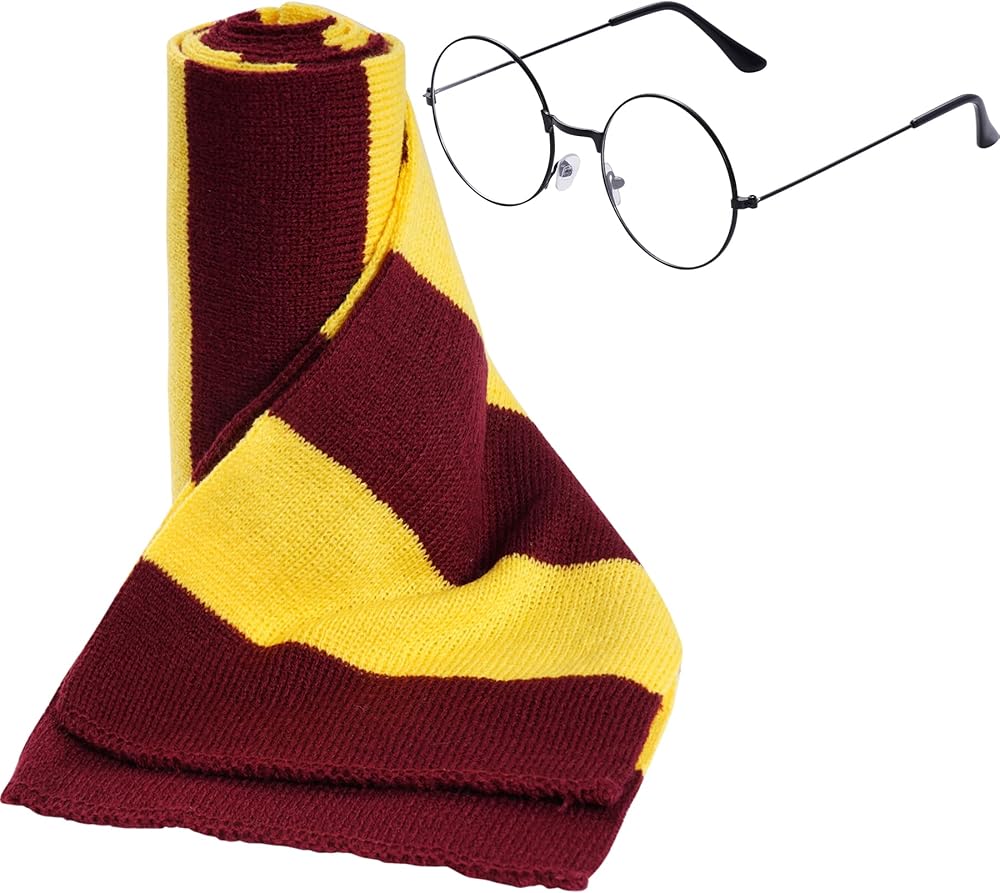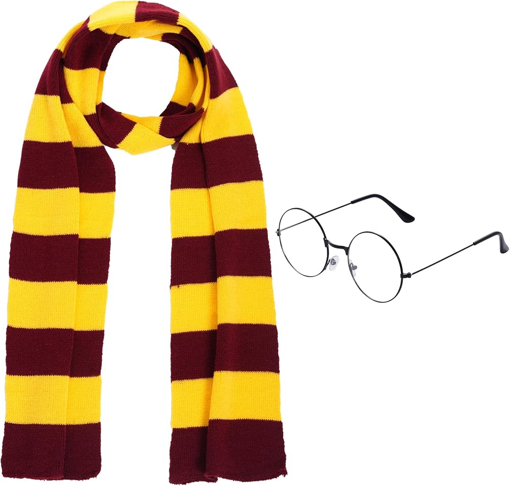 Widely Occasions: This novelty scarf and glasses costume accessory set are suitable for wizarding school uniform, Halloween, Christmas, carnivals, role-play party, stage performance, fancy dress parties, costume parties, imaginative classroom activities and so on; Also an excellent gifts for your friends families to make them feel happy