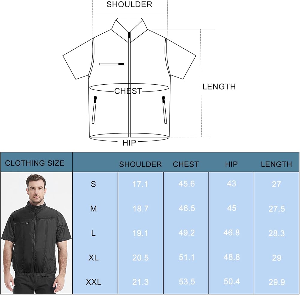 4 سرعات قابلة للتعديل: تتميز سترة التبريد بالمروحة بإعدادات 4 سرعات يمكن تشغيلها بسهولة عن طريق الضغط على زر البطارية. استمتع بالهواء البارد المتدفق بحرية بالسرعة التي تختارها. اضغط لفترة طويلة لمدة ثلاث ثوان لتشغيل/إيقاف.