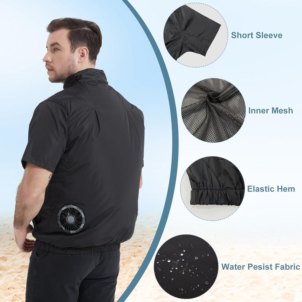 نسيج عالي الجودة: هذه السترة السوداء قصيرة الأكمام مصنوعة من نسيج مقاوم للأشعة فوق البنفسجية ومقاوم للماء. مقاومة أضرار أشعة الشمس بمختلف شدتها. مناسب لجميع احتياجات التبريد، ودرجة الحرارة العالية في الأماكن المغلقة، والعمال والطهاة. الأنشطة الخارجية مثل البستنة ومشاهدة مباريات الملعب والغولف والمشي لمسافات طويلة والتخييم ولعب كرة السلة وركوب الدراجات.