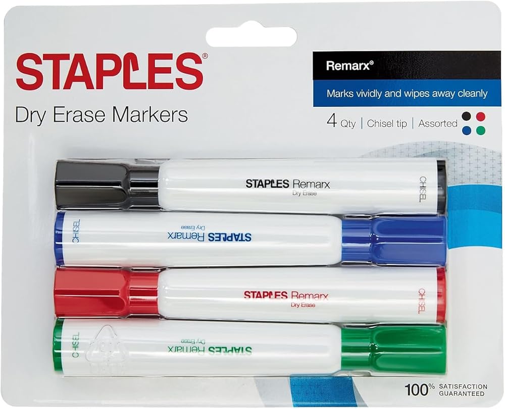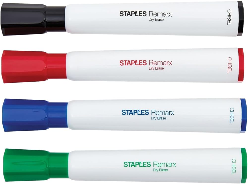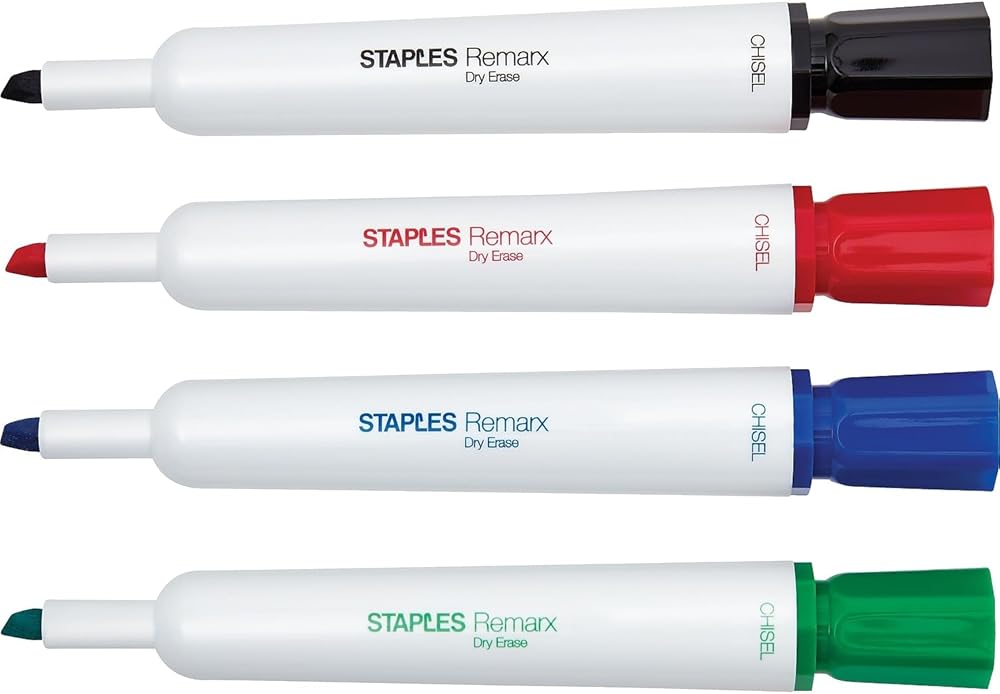 Staples Remarx Dry Erase Markers, Chisel Point, Assorted, 4/Pack (29205)