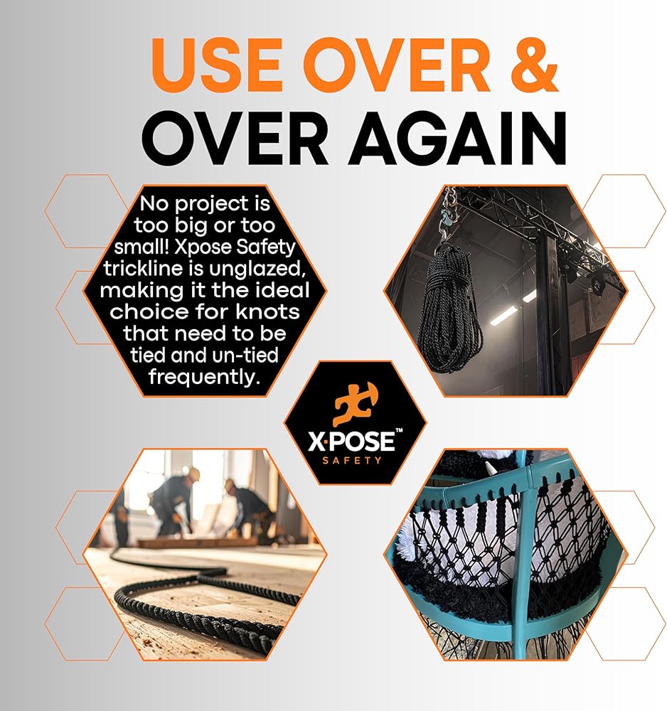 Stay organized and make the job easier with Xpose Safety trick line rope. Also known as tie line, theater string and sash cord, this braided cotton rope is designed to be invisible from a distance and assist in hanging lights, building sets, rigging props, bundling cables and handling the unique demands of the theater and film industries.