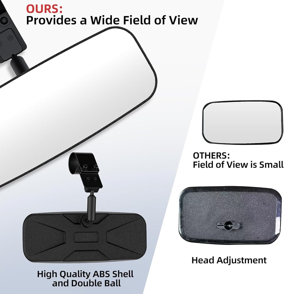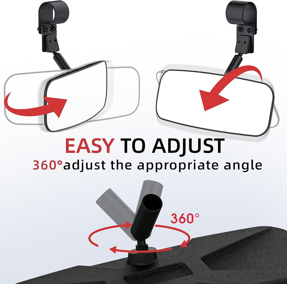 【مركز UTV والمرايا الجانبية】تعتمد مرآة الرؤية الخلفية UTV الخاصة بنا على وظيفة تعديل رأس الكرة المزدوجة، والتي يمكنها ضبط مجال الرؤية 360 درجة بدون بقع عمياء. تتميز مرآة الرؤية الجانبية UTV بتعديل 360 درجة لأعلى ولأسفل ووظائف داخلية وخارجية قابلة للسحب، مما يمنحك تجربة مفصلة.