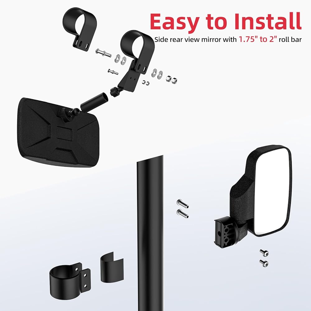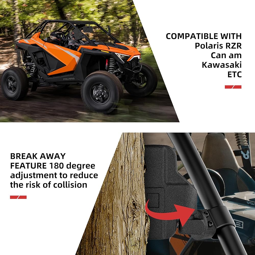 【مرآة الرؤية الخلفية GEVINFA RZR متوافقة مع】مجموعة مرآة الرؤية الخلفية UTV الخاصة بنا مناسبة على نطاق واسع لقفص القضبان الدوارة مقاس 1.65 بوصة - 2 بوصة ومتوافقة مع Polaris RZR PRO XP / XP 1000 /XP 4 1000 / S 1000 / Turbo S / Turbo S 4 / XP Turbo / XP 4 Turbo/ S4 1000 / 900 وأكثر، Can Am X3 Maverick Commander، Arctic Cat Wildcat، Pioneer، Talon، CFMOTO، Kawasaki Mule Teryx، Yamaha Rhino إلخ.