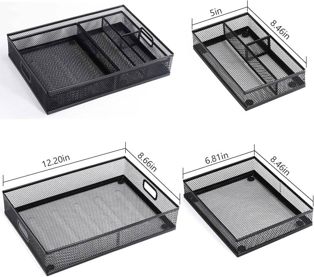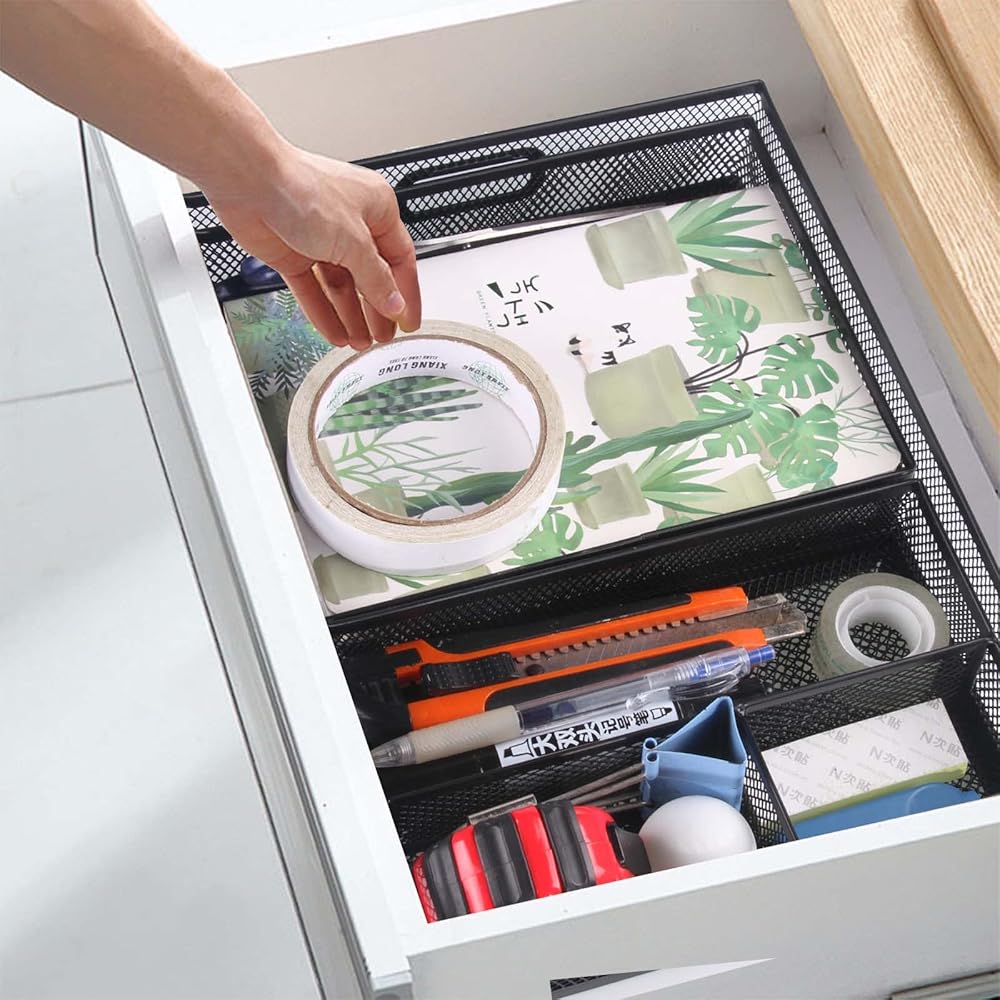 مواد عالية الجودة - مصنوعة من الفولاذ المطلي باللون الأسود القوي والمتين. خالٍ من أي مواد ضارة، منظم الدرج آمن للاستخدام وسيدوم لفترة طويلة.