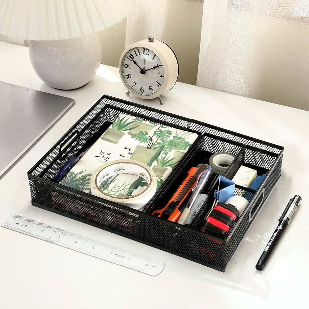 منظم أدراج متعدد الأغراض - صينية المكتب هذه مناسبة لتخزين الأشياء الصغيرة، وهي جيدة لتخزين العناصر مثل محركات الإبهام وبطاقات SD والمقص الصغير ومشابك الورق والملاحظات البريدية.