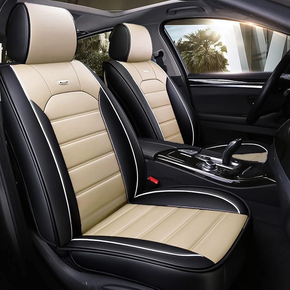 【عزز تجربة القيادة الخاصة بك】- غطاء مقعد السيارة هذا مصنوع من جلد صناعي عالي الجودة على السطح ومملوء بإسفنجة عالية المرونة من الداخل، ناعمة ومسامية. الجانب الخلفي مجهز بجزيئات سيليكون مضادة للانزلاق، والتي يمكن أن تضمن عدم تحرك الغطاء أو انزلاقه عند القيادة، مما يمنحك تجربة قيادة مريحة وآمنة.