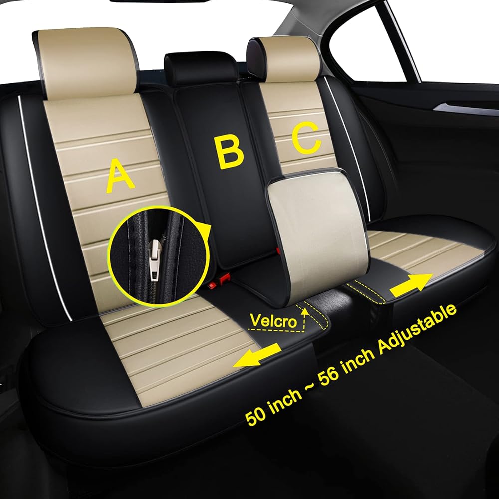 【غطاء مقعد عالمي】- أغطية المقاعد الخلفية للسيارة متصلة بشريط فيلكرو وسحاب، طول قابل للتعديل من 50 إلى 56 بوصة، مناسب لمعظم السيارات ذات 5 مقاعد، سيارات السيدان، سيارات الدفع الرباعي، الشاحنات.