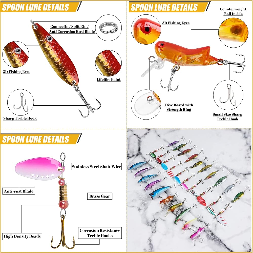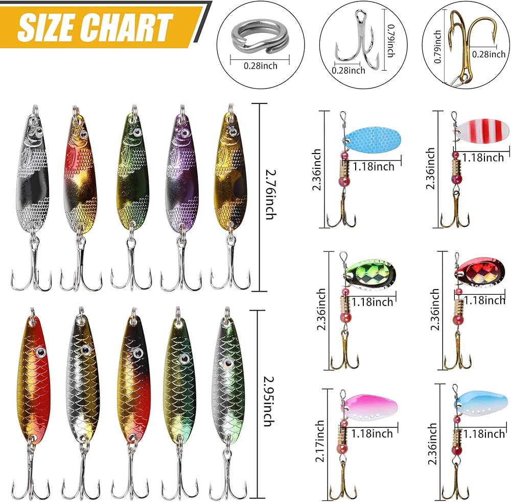 مادة ممتازة - يأتي كل طعم دوار مزودًا بخطاف ثلاثي حاد من النحاس المُشكل، وجسم رئيسي مطلي ومغزل من الفولاذ المقاوم للصدأ. توفر الشفرة عالية الجودة وميضًا واهتزازًا مستمرًا.