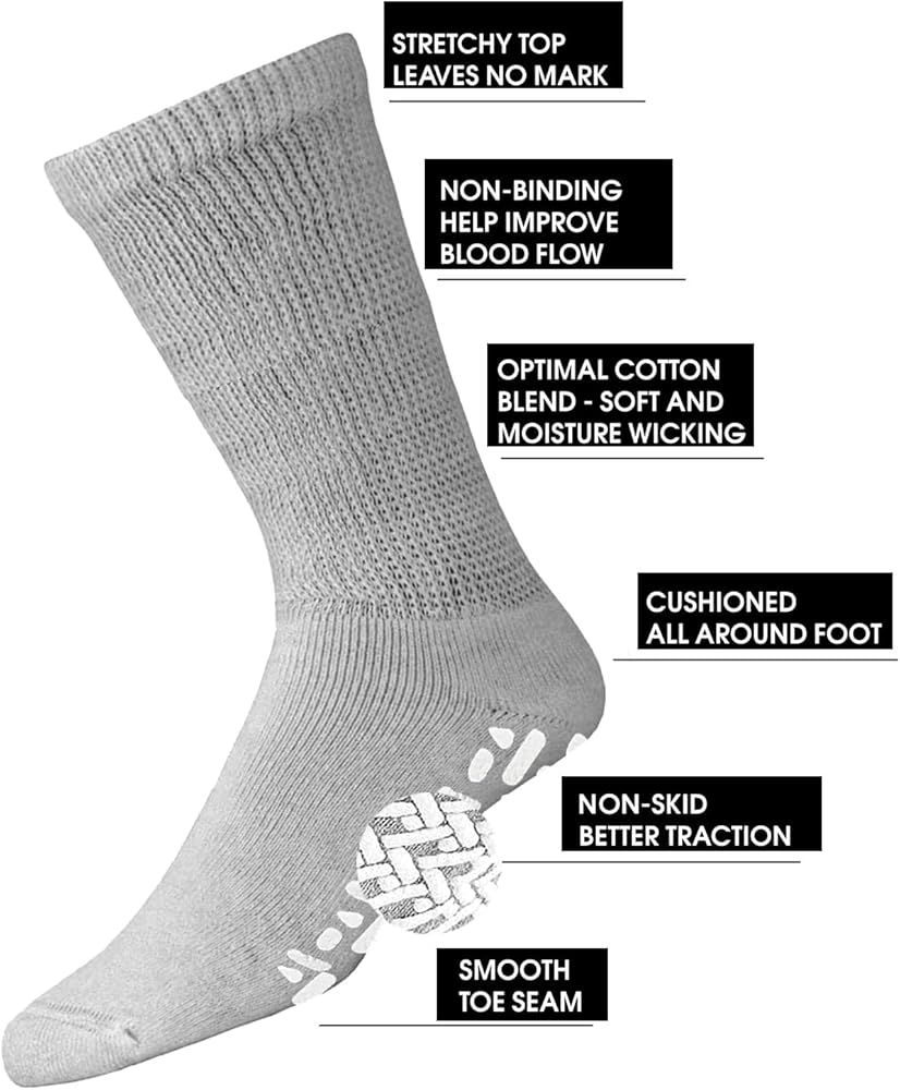 6 Pairs of diabetic socks in Black,Gray or White color, each pair featuring a unique design for enhanced appearance and comfort.