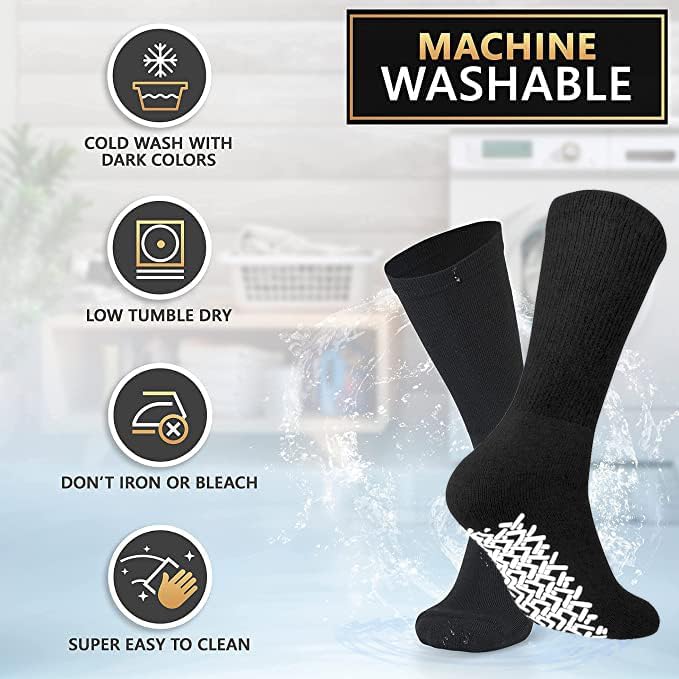 These diabetic crew socks are made of soft and breathable cotton, which is comfortable to wear all day long. The socks have a non-binding top to prevent bunching and slipping, and a reinforced heel and toe for added durability. They are ideal for men with diabetes, as they help to prevent foot problems such as blisters and ulcers. The socks are available in a variety of colors and sizes, and are machine washable and dryable. The product descriptions provided are concise and informative, highlighting the key features and benefits of each product. They are written in a clear and easy-to-understand language, making it easy for customers to understand the qualities and uses of the products. Overall, the product descriptions are effective in conveying the value and appeal of the featured products to potential customers.
