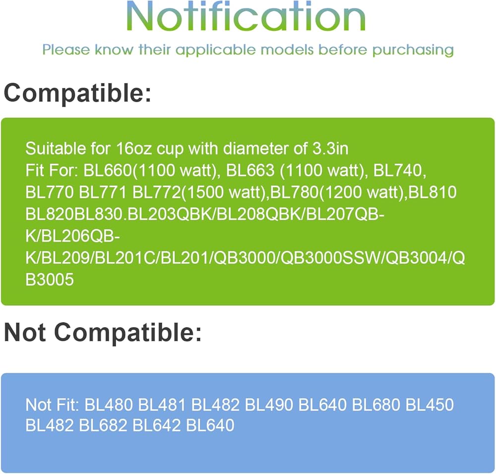 يناسب فقط الخلاط الاحترافي BL660 (1100 واط)، BL663 (1100 واط)، BL663CO، BL665Q، BL740، BL770 BL771 BL772 (1500 واط)، BL780 (1200 واط)، BL810 BL820 BL830 (يرجى التأكد قبل الشراء).