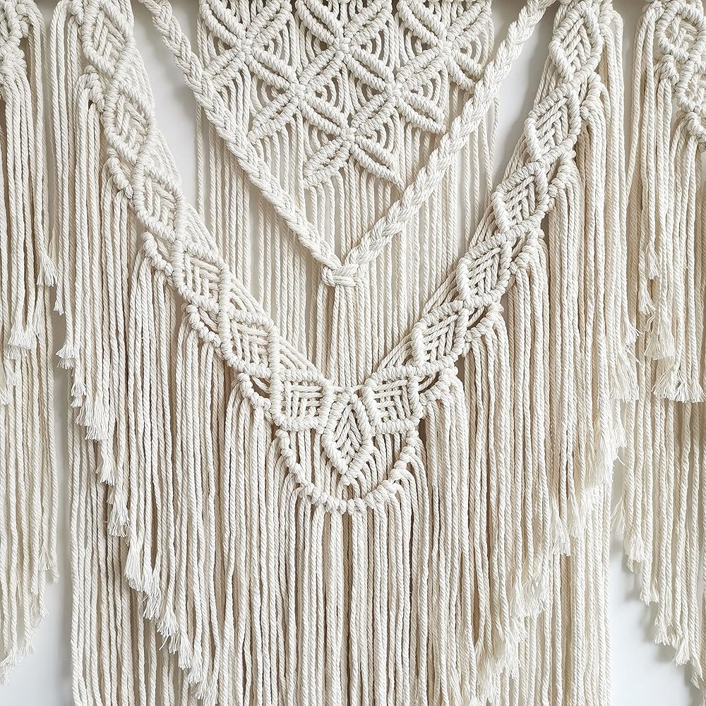 Unique Macrame Pattern: The large macrame wall hanging that adds a unique, boho-luxury touch to any space. Hang it on your wall as macrame curtains for windows, macrame headboard for bedroom, woven hanging tapestry.