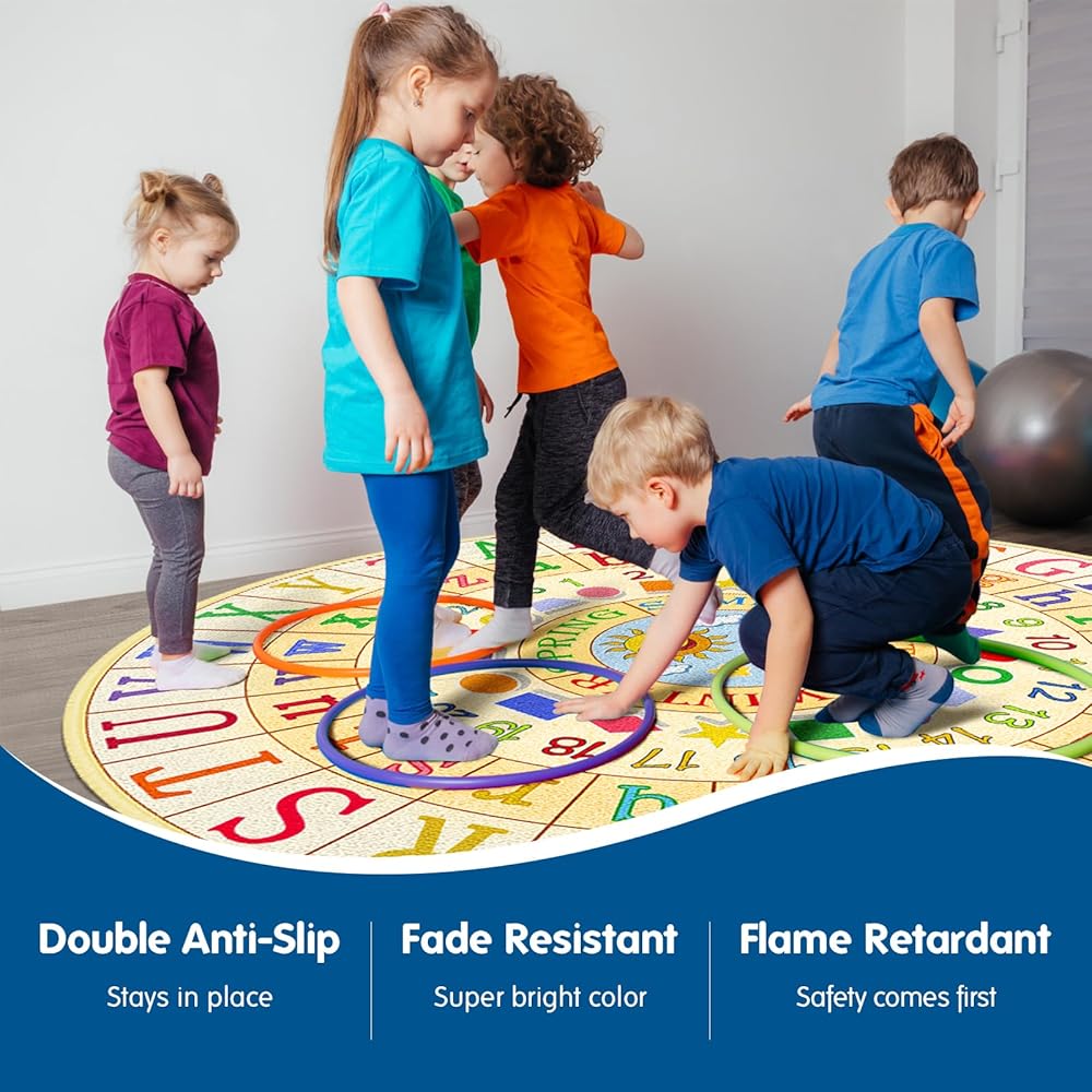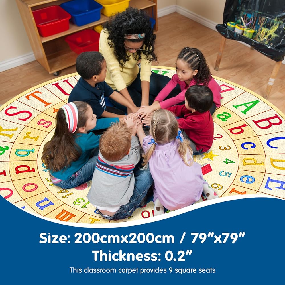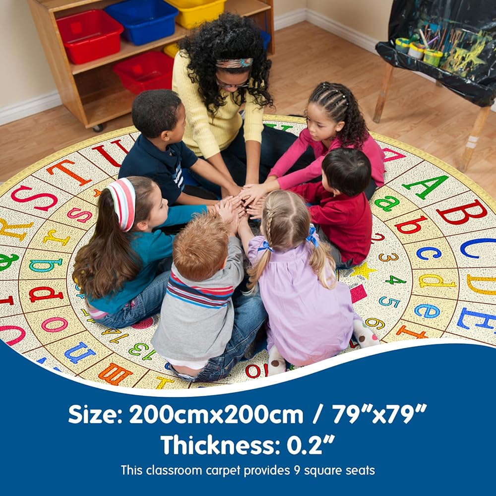 ❤️ راحة مريحة للعقول الفضولية - سجادنا الفخم والجذاب يحول أي مساحة إلى ملاذ دافئ وترحيبي للطلاب للجلوس والتعلم والاستكشاف. تم تصميم سجادنا الدائري للفصل الدراسي بمقاس كبير 79 × 79 بوصة، مما يزيد من مناطق اللعب والتعلم، مما يعزز التعاون والمرح. مثالية للأنشطة التعليمية والجماعية الفردية، هذه السجادات ضرورية للفصول الدراسية الابتدائية.