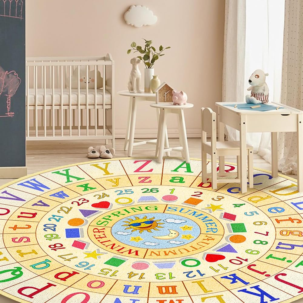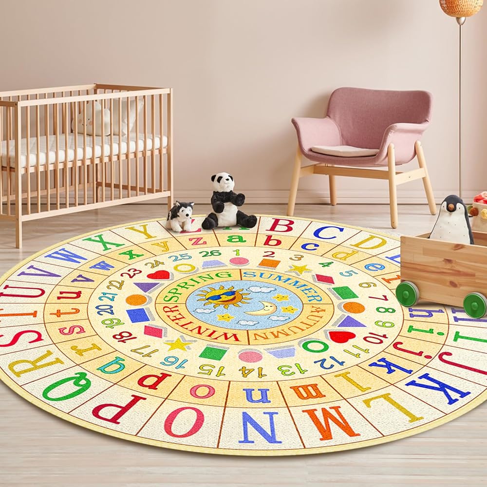 ❤️ متعددة الاستخدامات وحيوية لأي مكان - سجادة الأطفال لدينا مثالية لغرف الأطفال ومراكز الرعاية النهارية وما بعدها، سجادنا الدائري الصغير يجلب اللون والبهجة إلى أي مساحة. تجذب الألوان المفعمة بالحيوية انتباه الأطفال، مما يخلق جوًا جذابًا للتعلم واللعب. استخدمها في وقت القصة، أو في دائرة، أو كمكان مريح للتفاعلات الفردية.