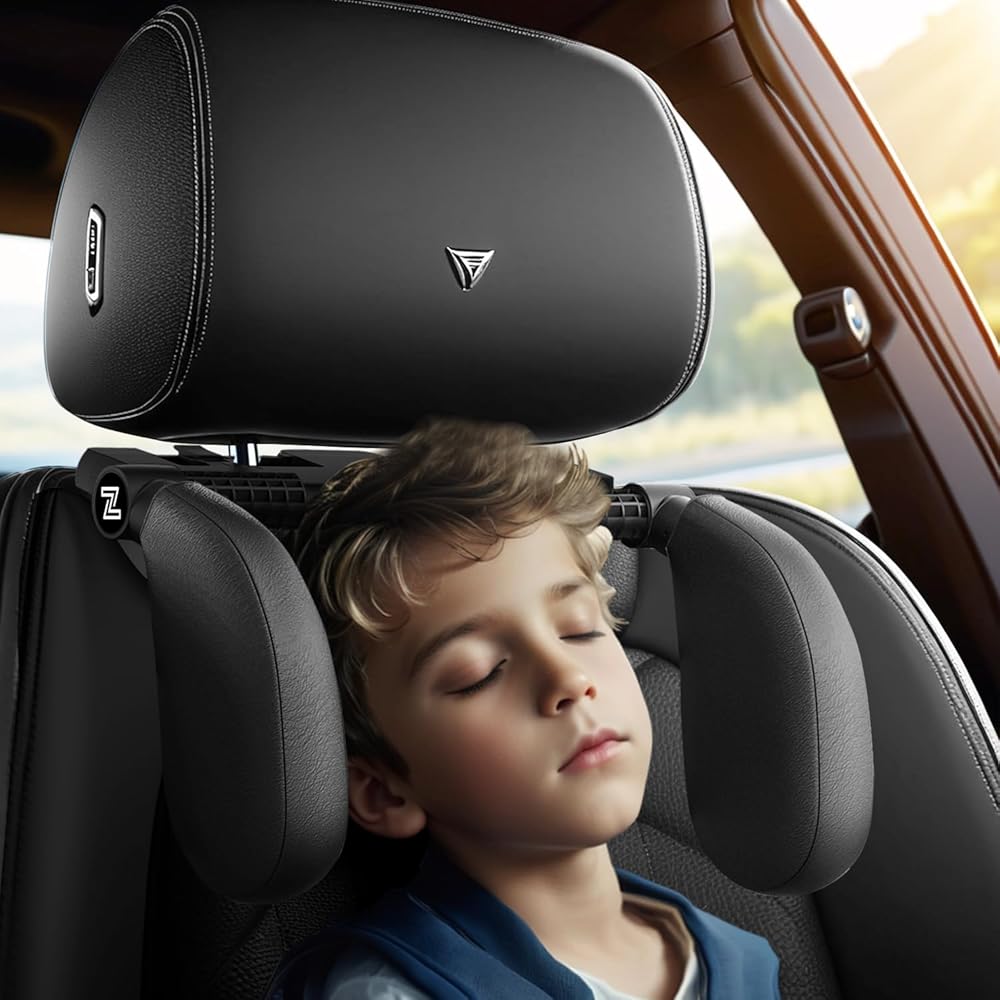 وسادة مسند رأس السيارة، مسند رأس سميك من إسفنج الذاكرة، وسادة دعم الرقبة، قابلة للتعديل 180 درجة، نوم السيارة أثناء السفر، تمنع التواء العمود الفقري العنقي، مناسبة للأطفال والكبار (أسود)