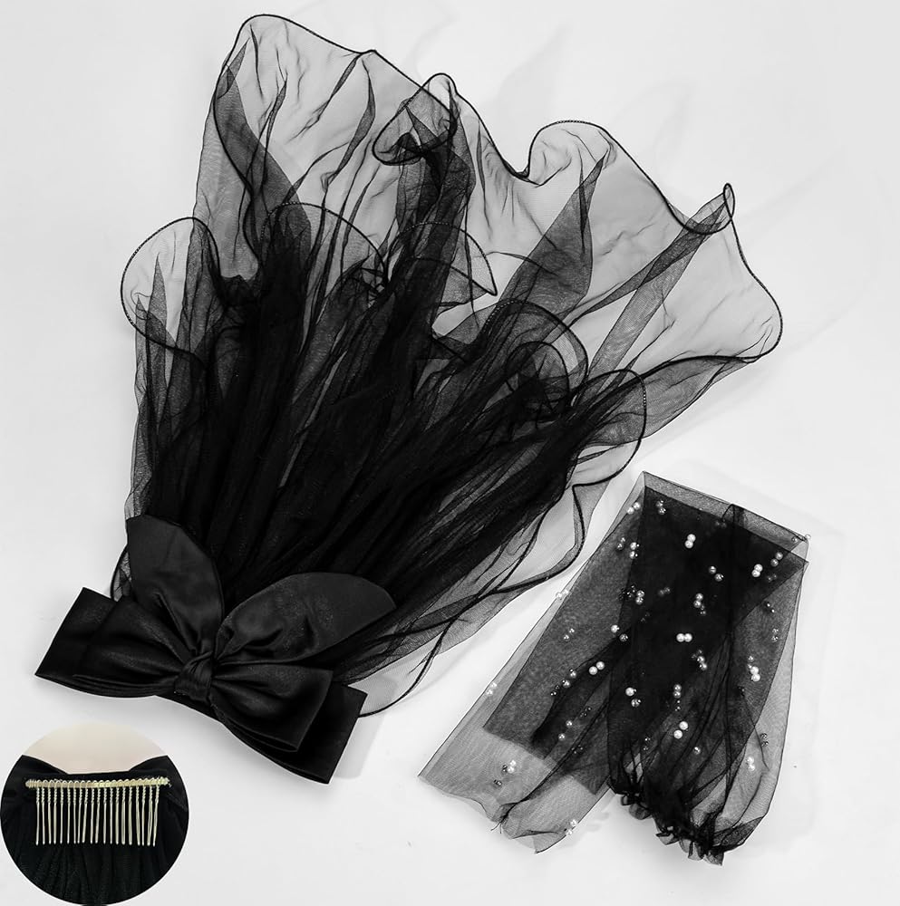 Bow veil 58cm/22.8in long, pearl gloves 47cm / 18.5in long.