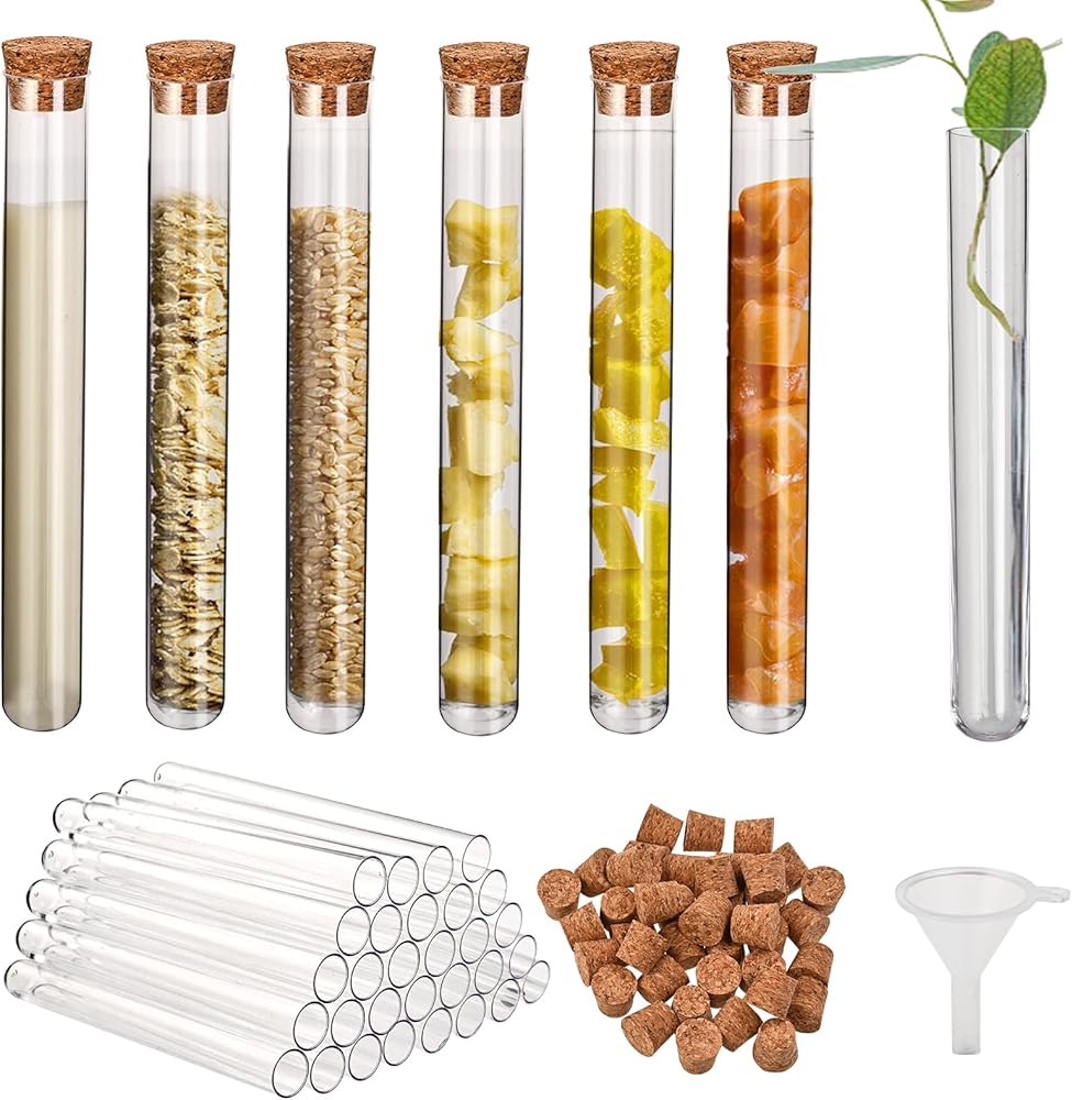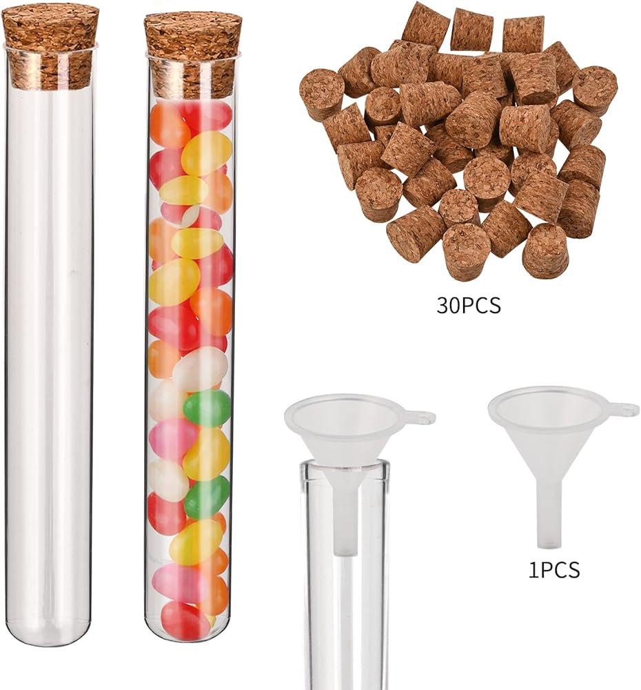30 قطعة من أنابيب اختبار البلاستيك الشفاف مع سدادات الفلين، زجاجات بلاستيكية صغيرة مقاس 16 × 100 مم 10 مل مع فلين، ختم جيد لتخزين الحلوى، ملح الاستحمام، التجارب العلمية وانتشار النباتات