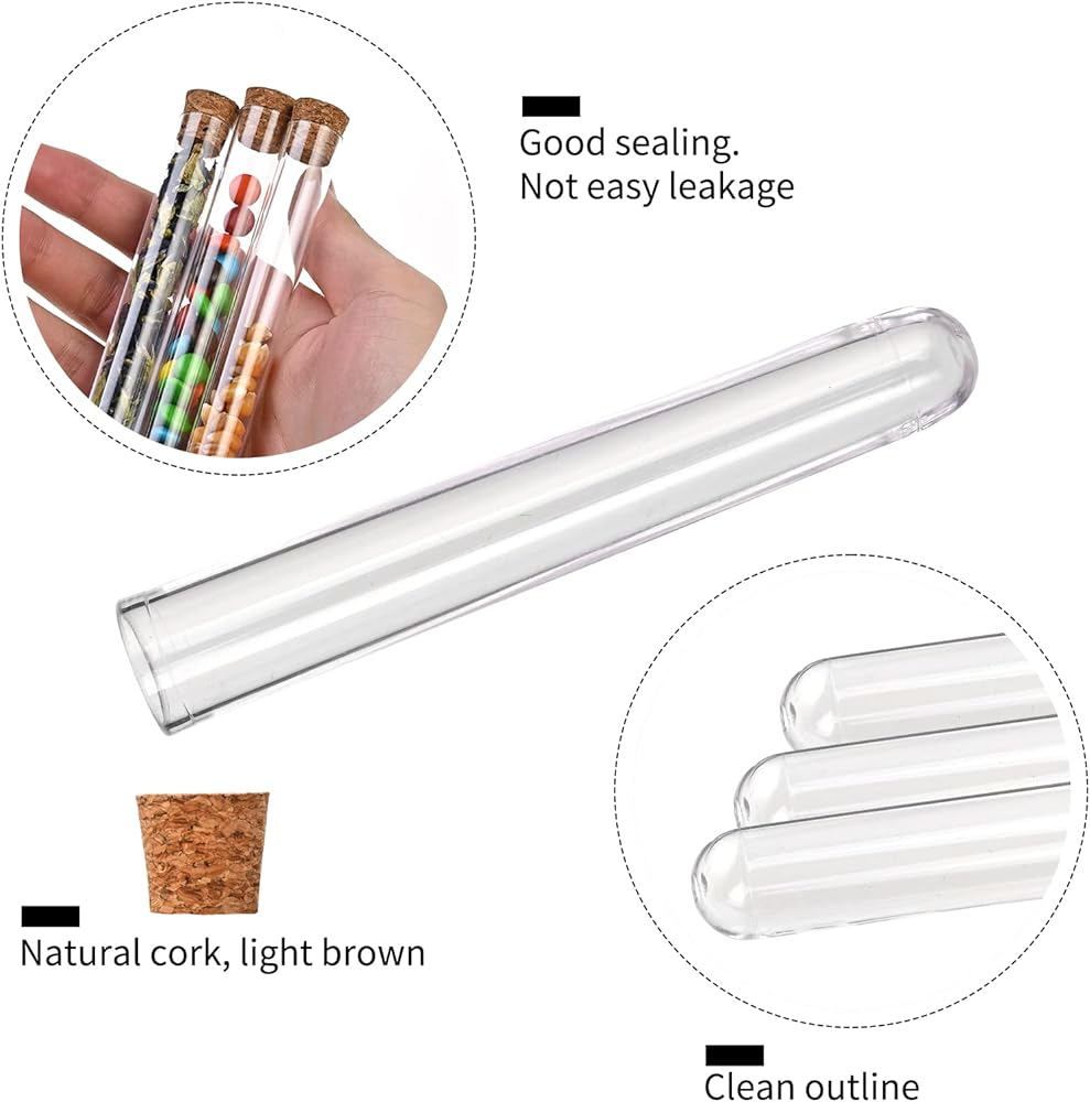 مادة جيدة: أنابيب اختبار بلاستيكية شفافة مصنوعة من البوليسترين الشفاف، قوية وخالية من السموم، وغير سامة، وخفيفة الوزن، وجدار أنبوبي شفاف مثل الزجاج ولكن لا تنكسر بسهولة.