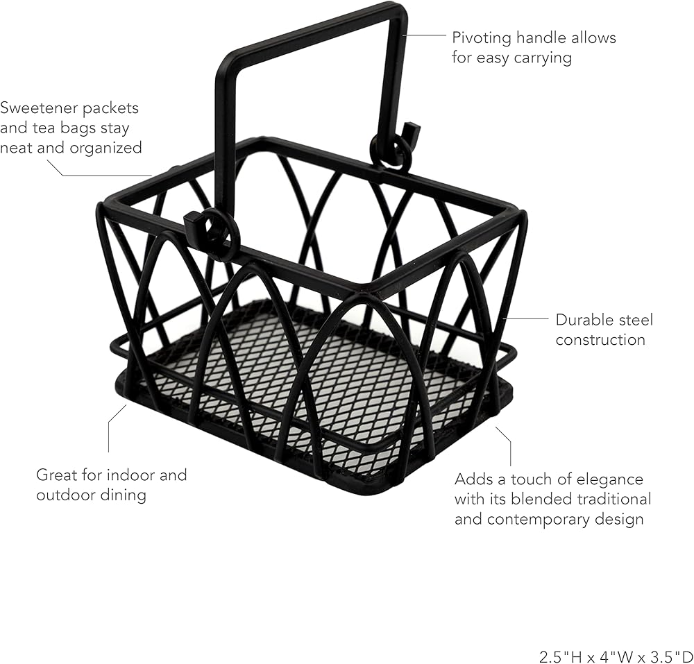 EASY CARRYING: A pivoting handle makes it easy to port this sugar packet basket from counter to table and more.